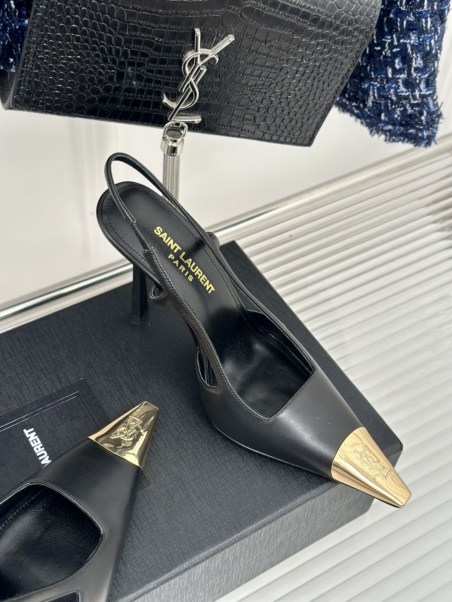SL JEANNE SLINGBACK PUMPS BLACK CALFSKIN