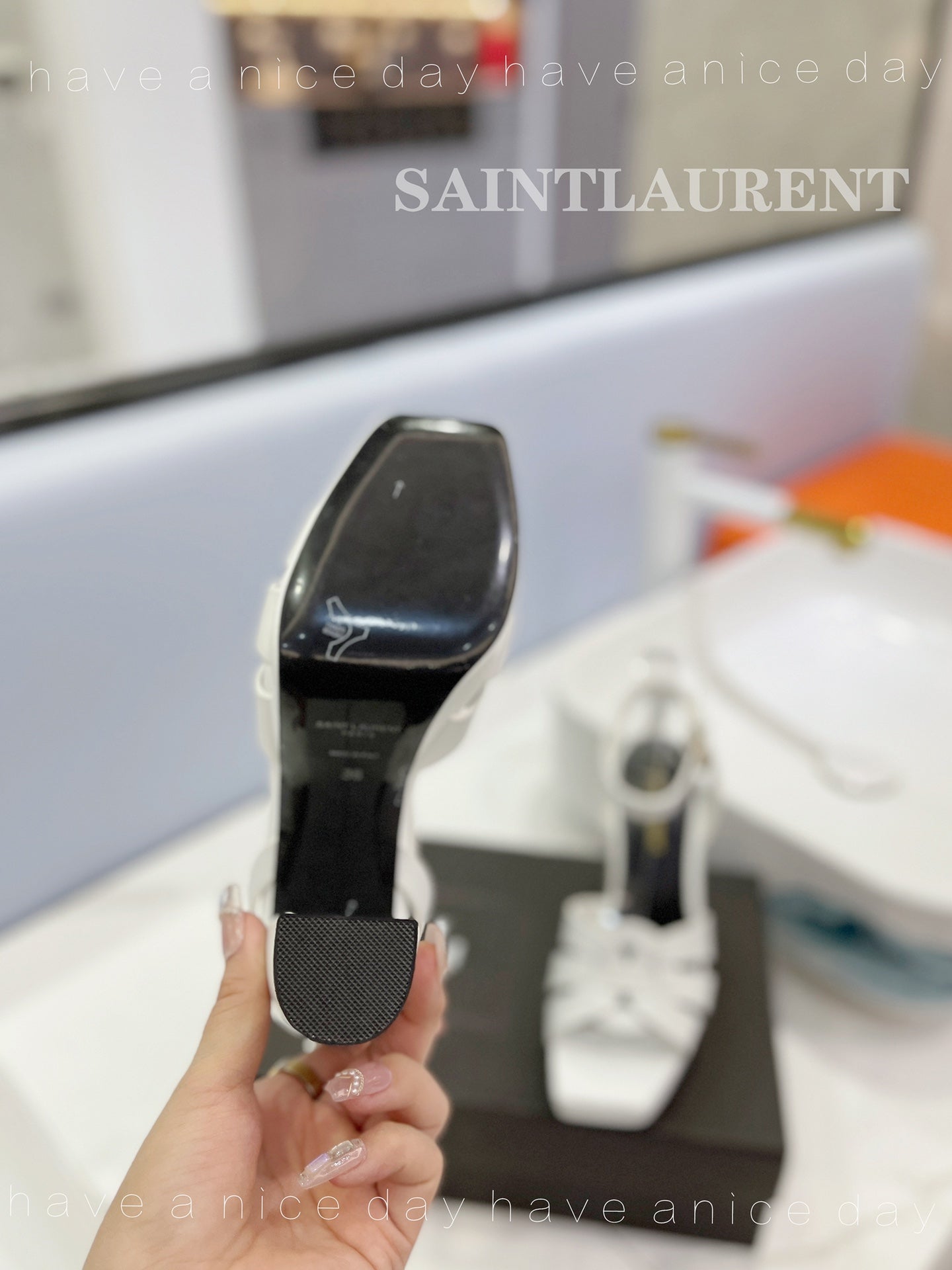 SL TRIBUTE FLATFORM SANDALS WHITE CALFSKIN