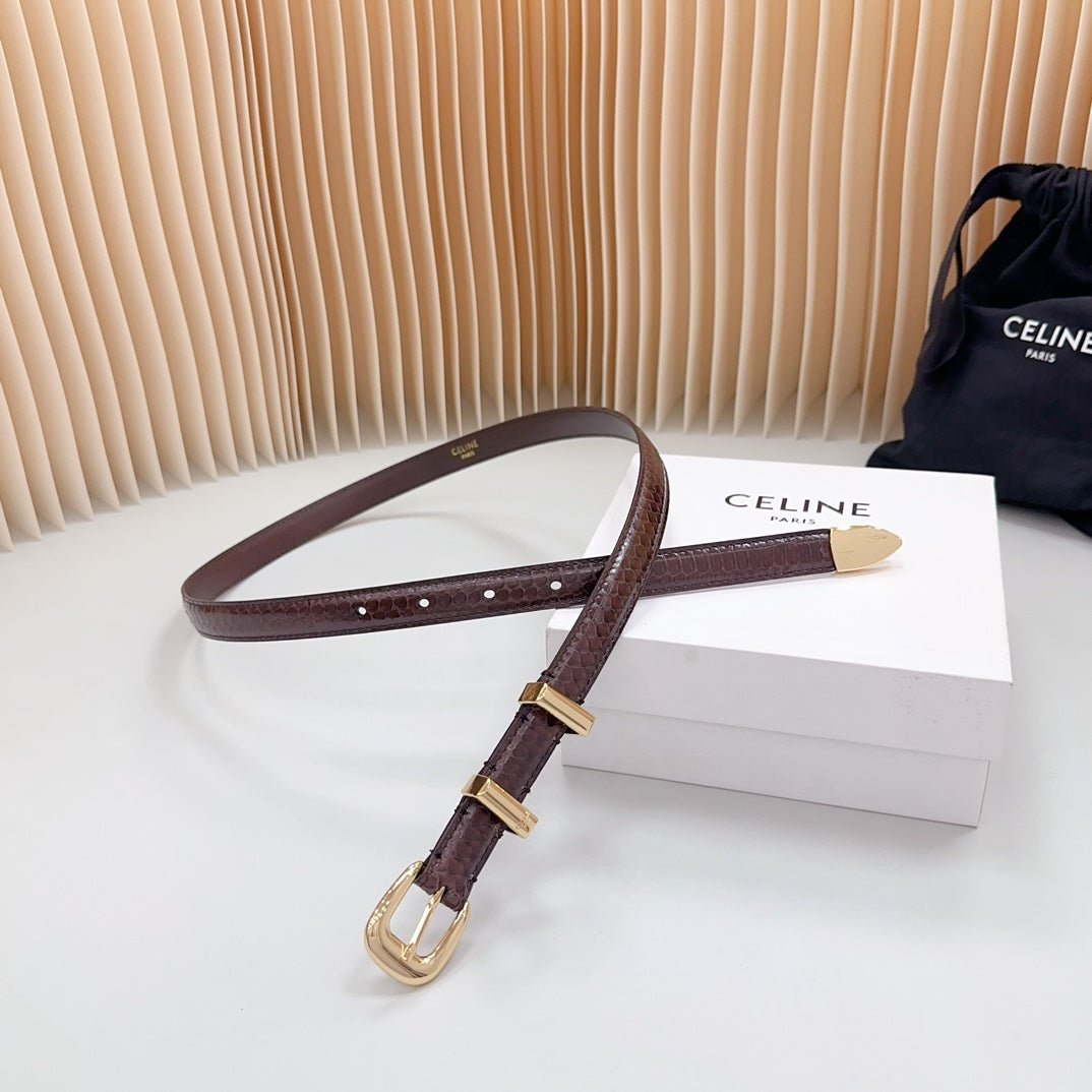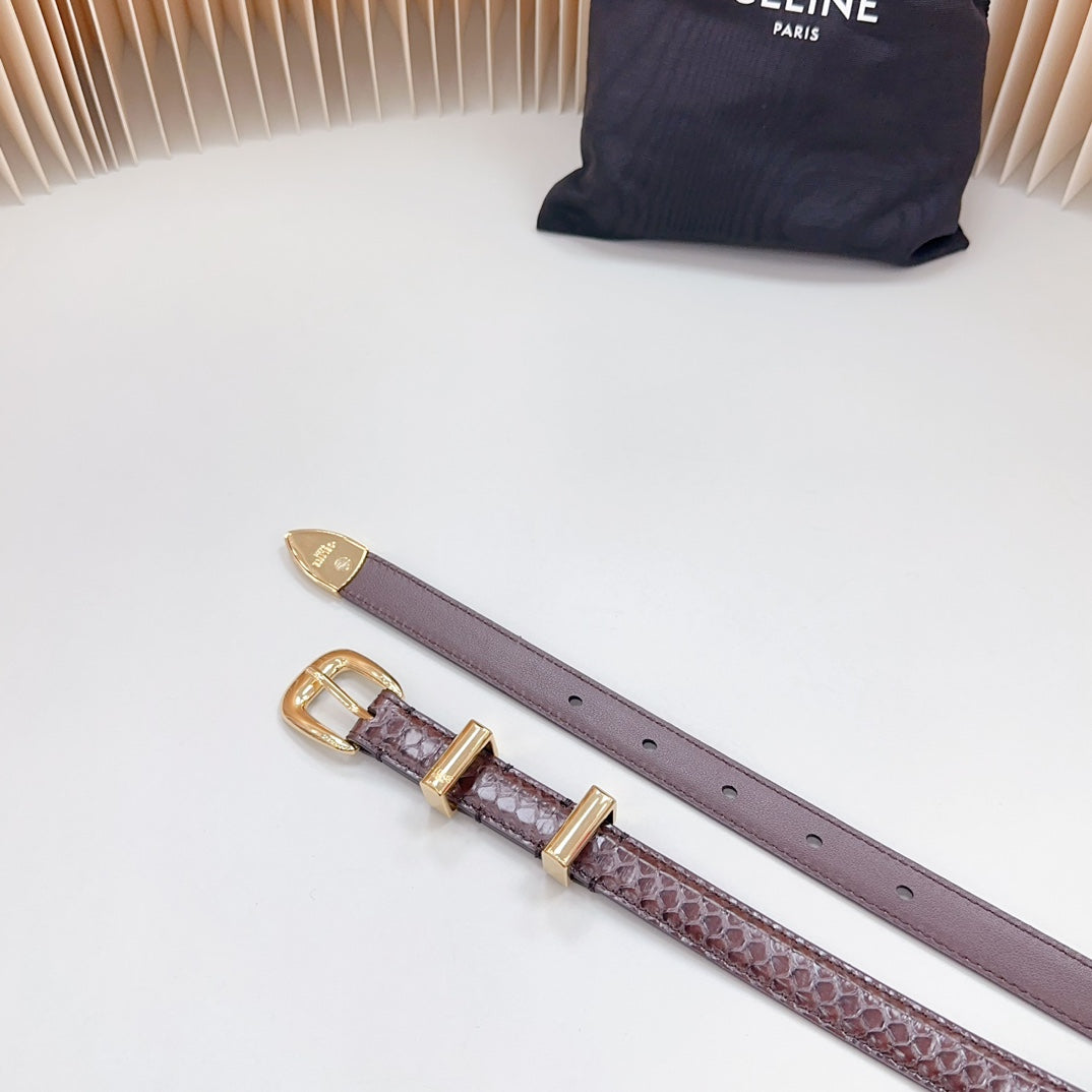 Small Western Belt 18mm Brown Snake Embossed Calfskin Light Gold Hardware