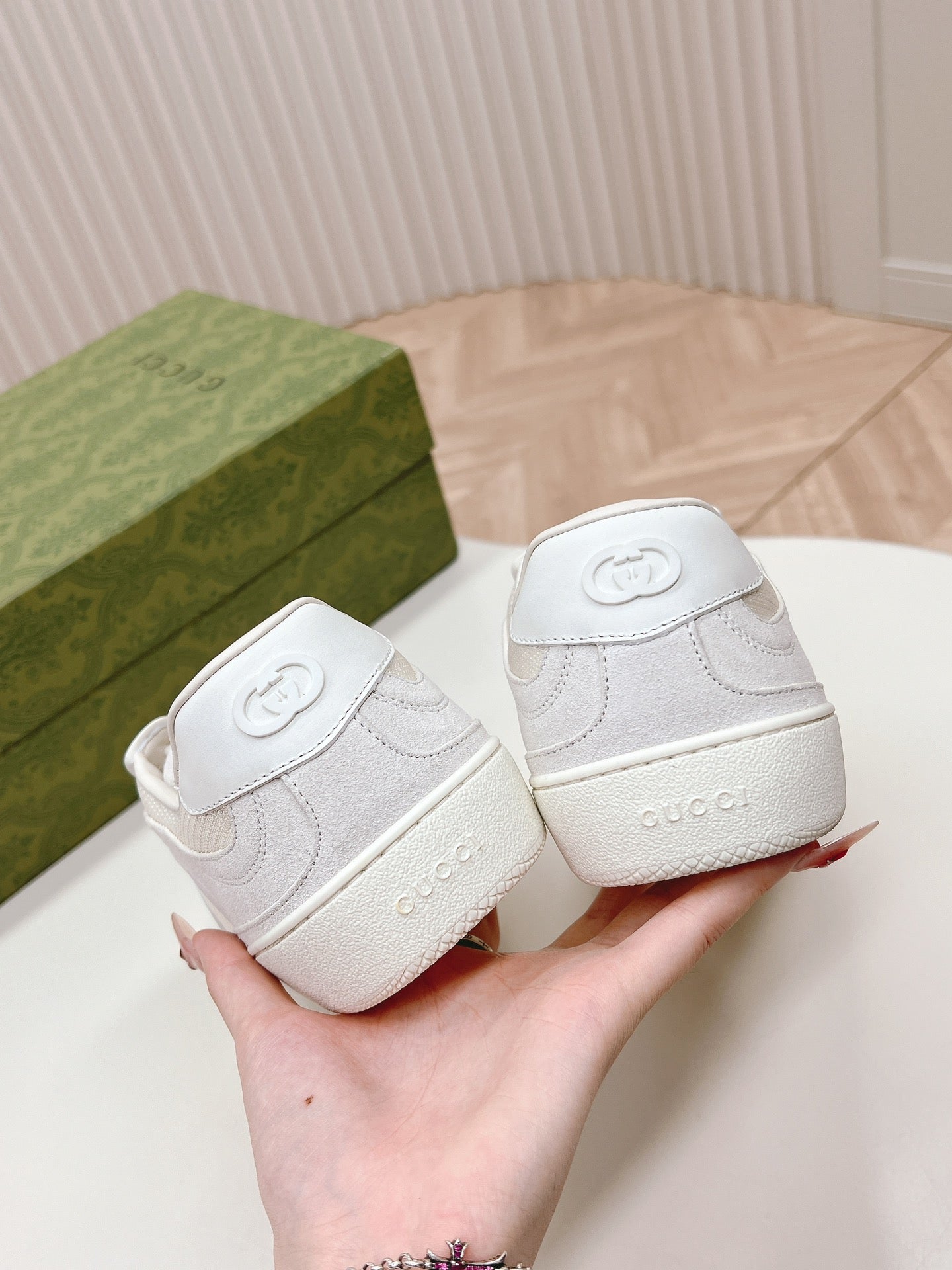 SNEAKER WITH INTERLOCKING G IN WHITE SUEDE AND MESH