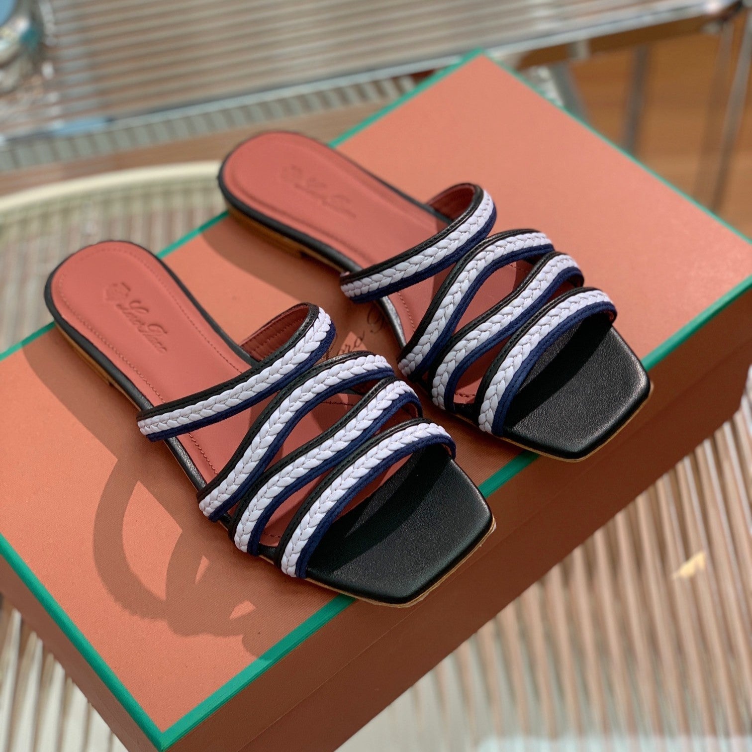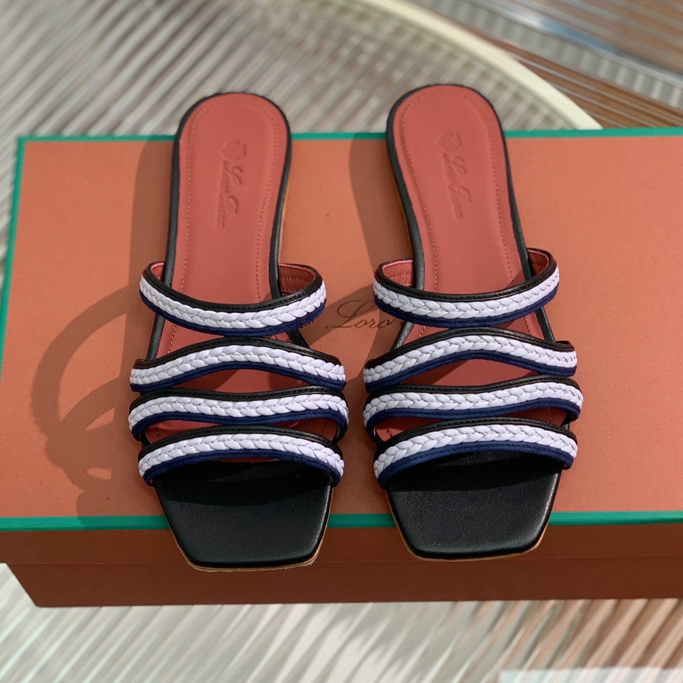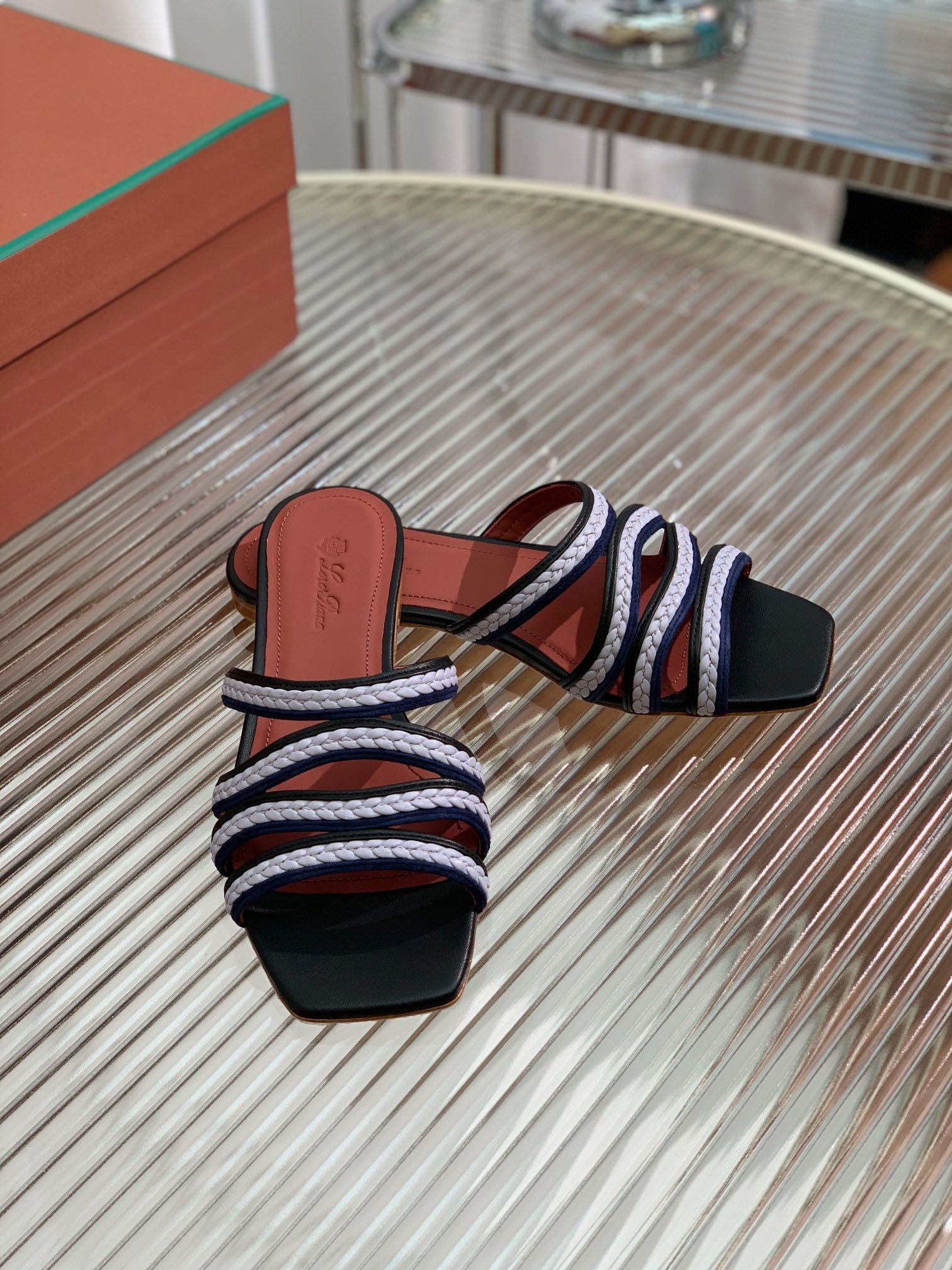 Sprightly Charms Mule Black Purple Navy Calfskin