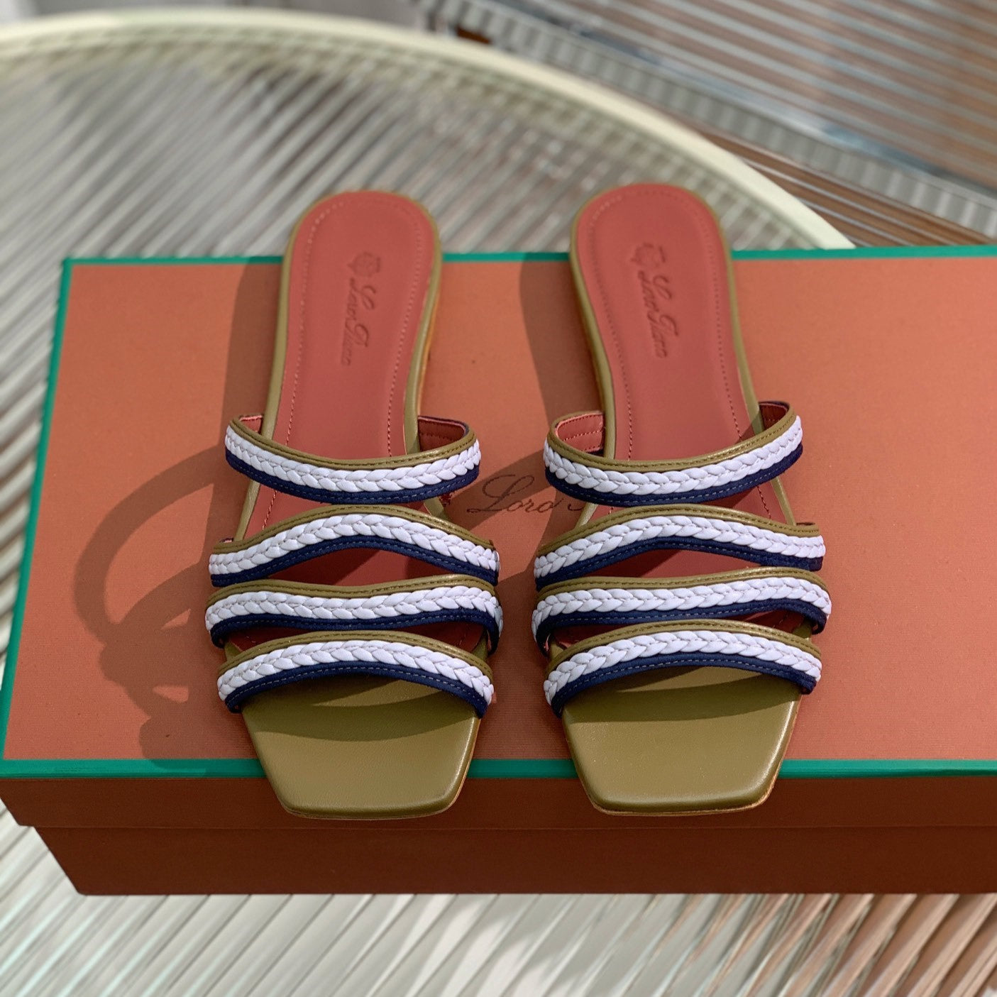 Sprightly Charms Mule Olive Purple Navy Calfskin