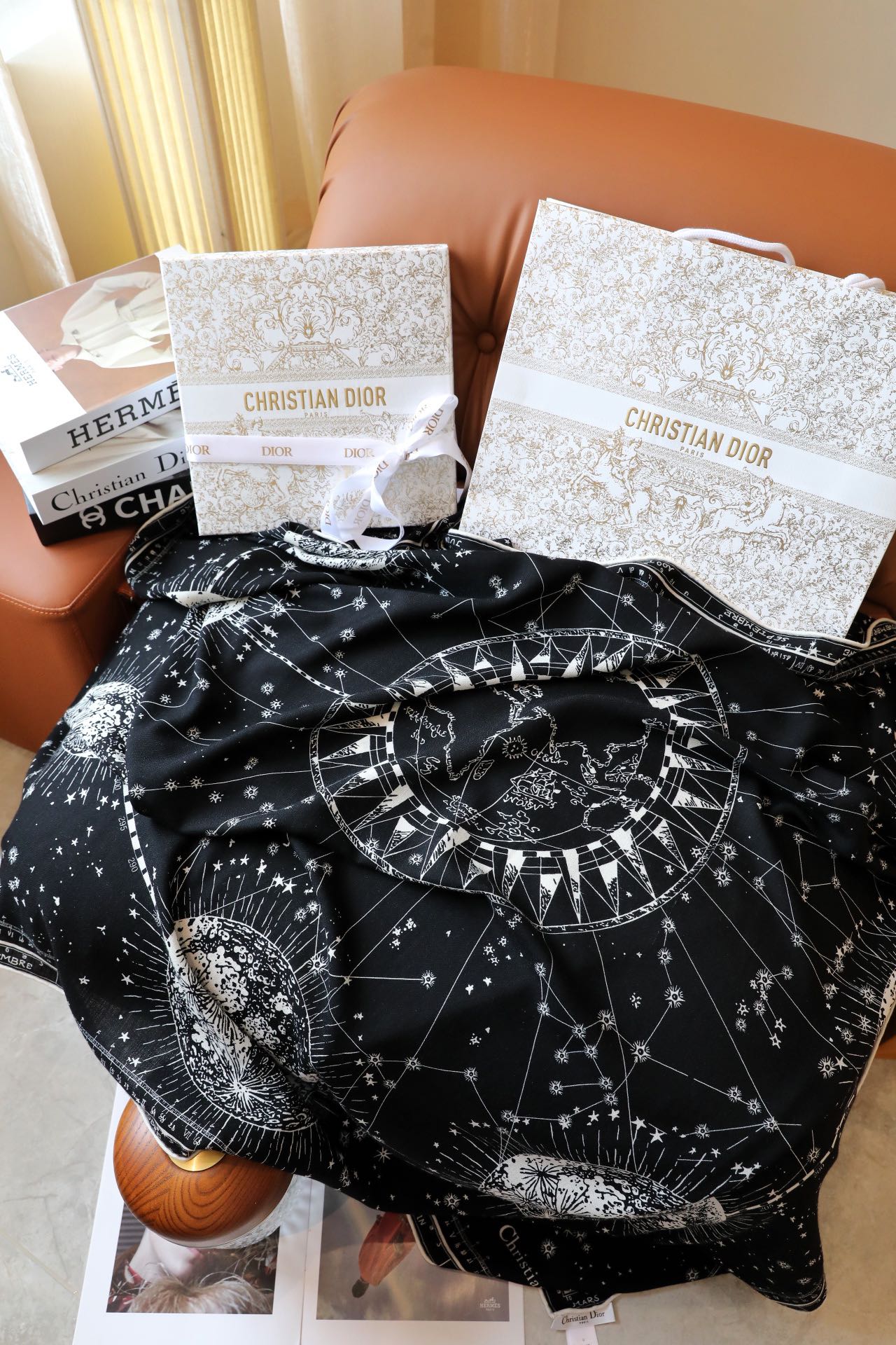 SQUARE SCARF 140 CM IN BLACK MIX WHITE MONOGRAM SILK 393136
