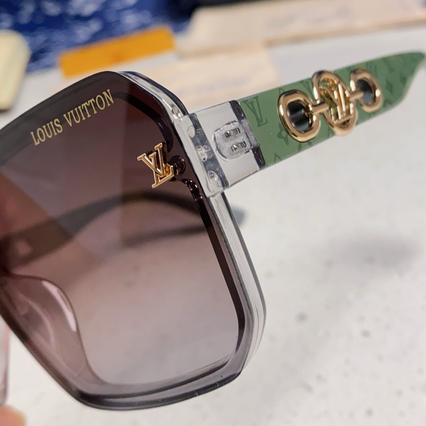 SQUARE SUNGLASSES 573318 IN GREEN ACETATE GREY SMOKE LENS