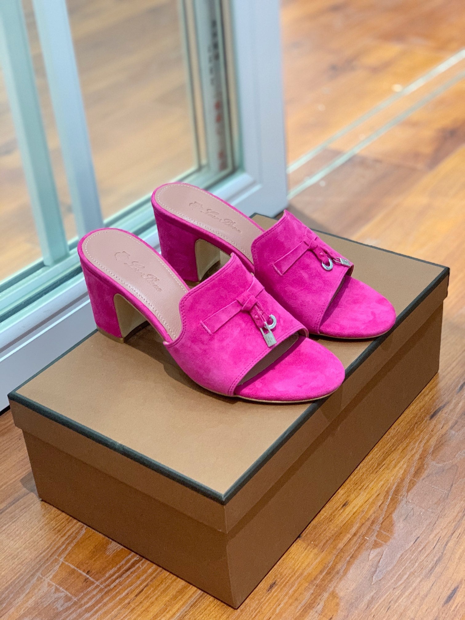 Summer Charms Mules 80 Hot Pink Suede Pink Lambskin