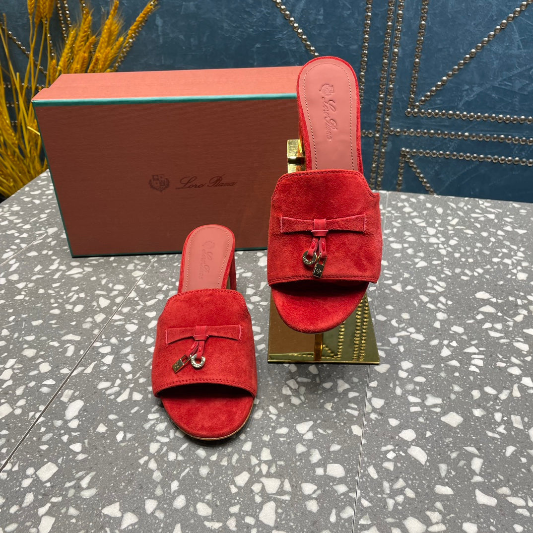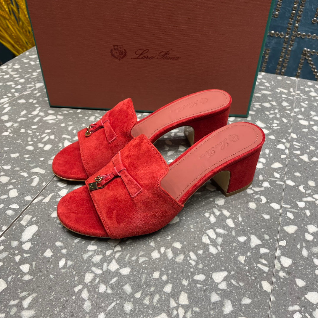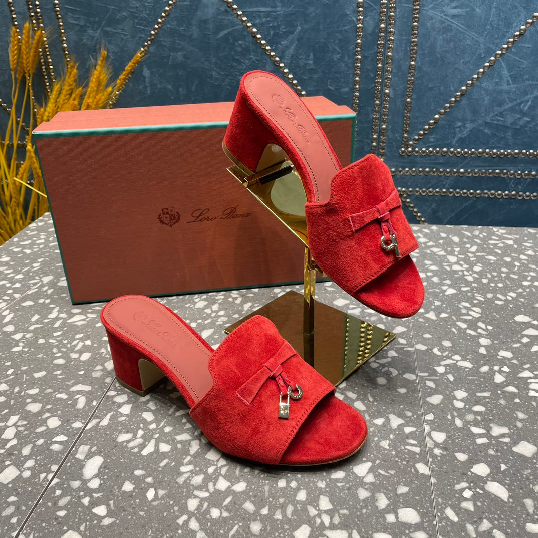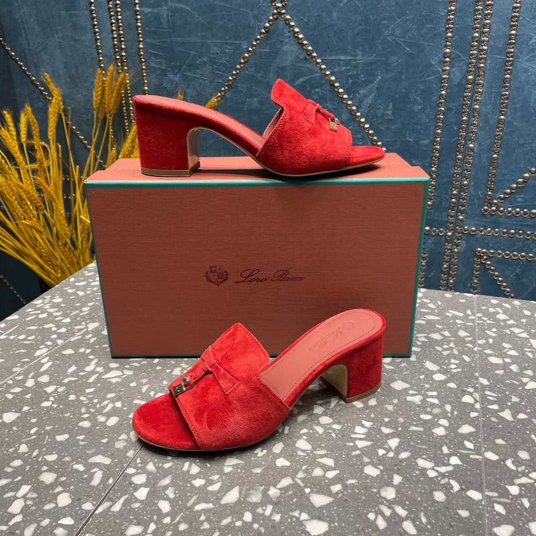 Summer Charms Mules 80 Red Suede Salmon Lambskin
