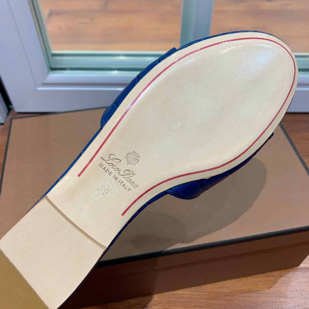Summer Charms Sandals Mule Blue Crocodile Pattern Pink Lambskin