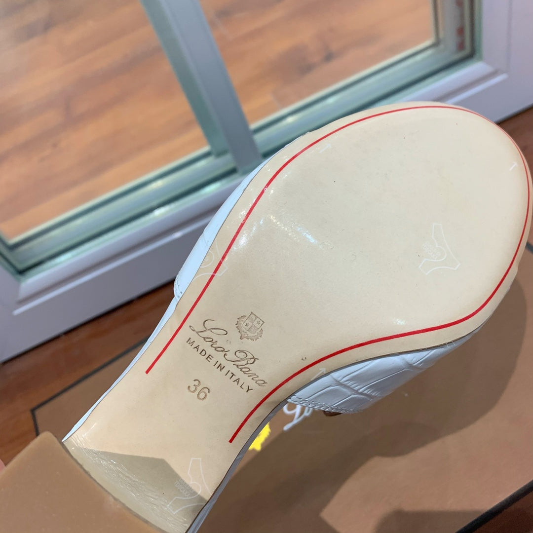 Summer Charms Sandals Mule White Crocodile Pattern Pink Lambskin