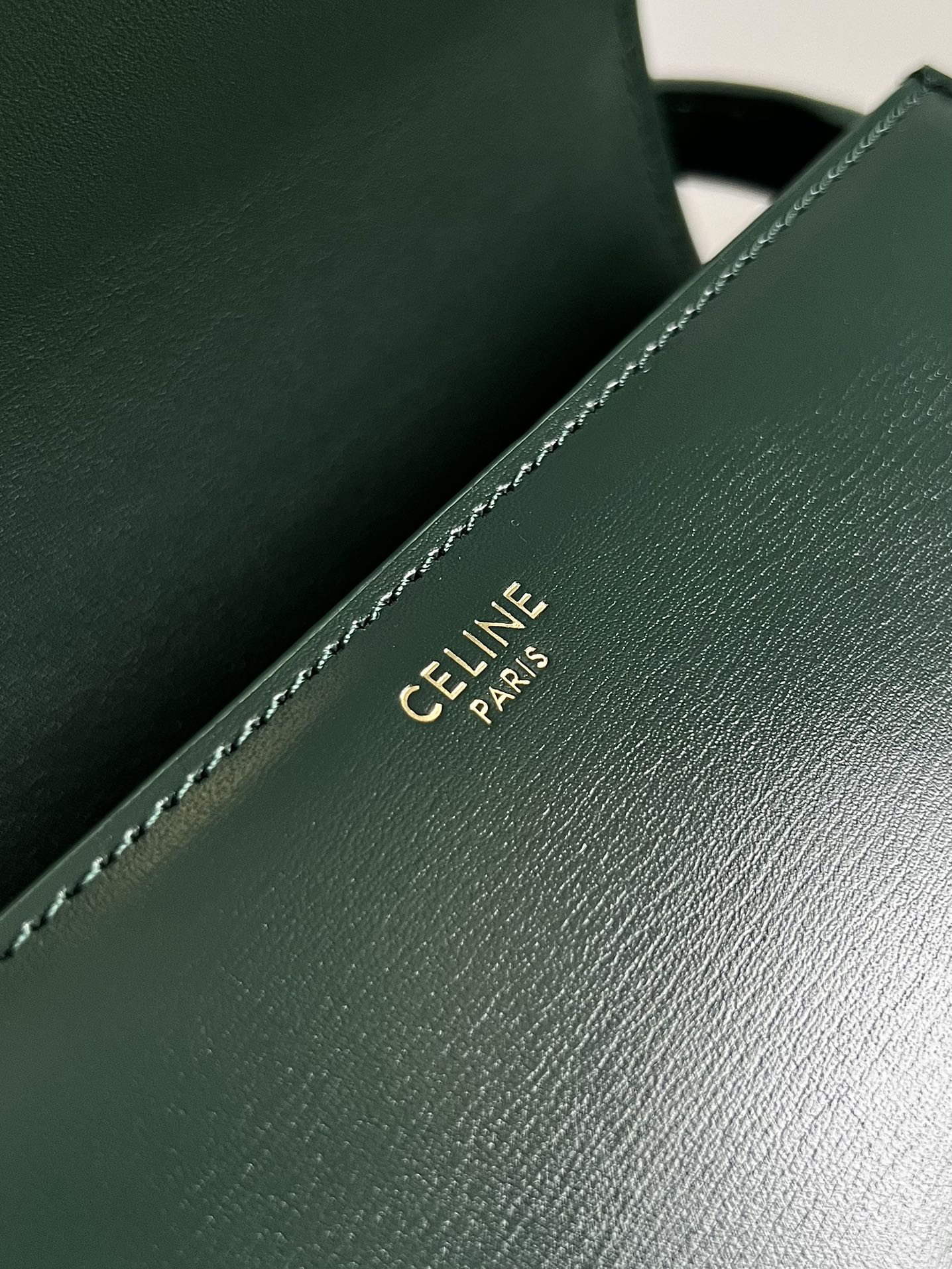 - Color: Green leather, Gold hardware