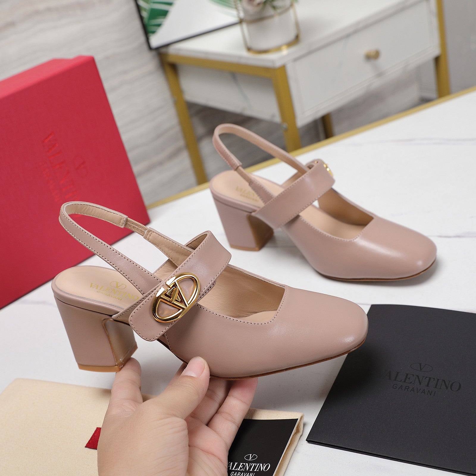 The Bold Edition Vlogo Slingback 65 Deep Mouth Half Drag Heels Rose Cannelle Calfskin