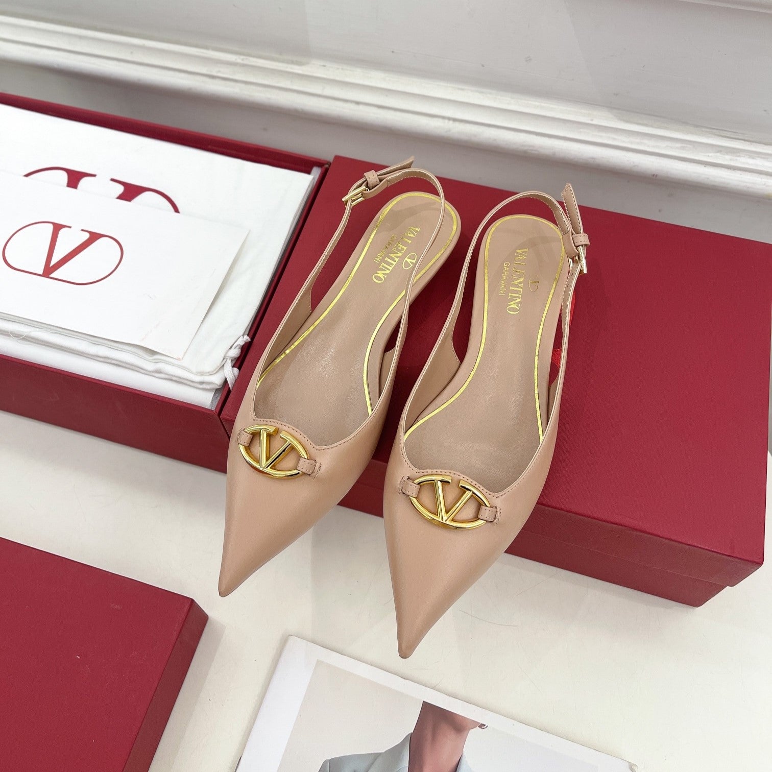 The Bold Edition Vlogo Slingback Flat 20 Beige Calfskin