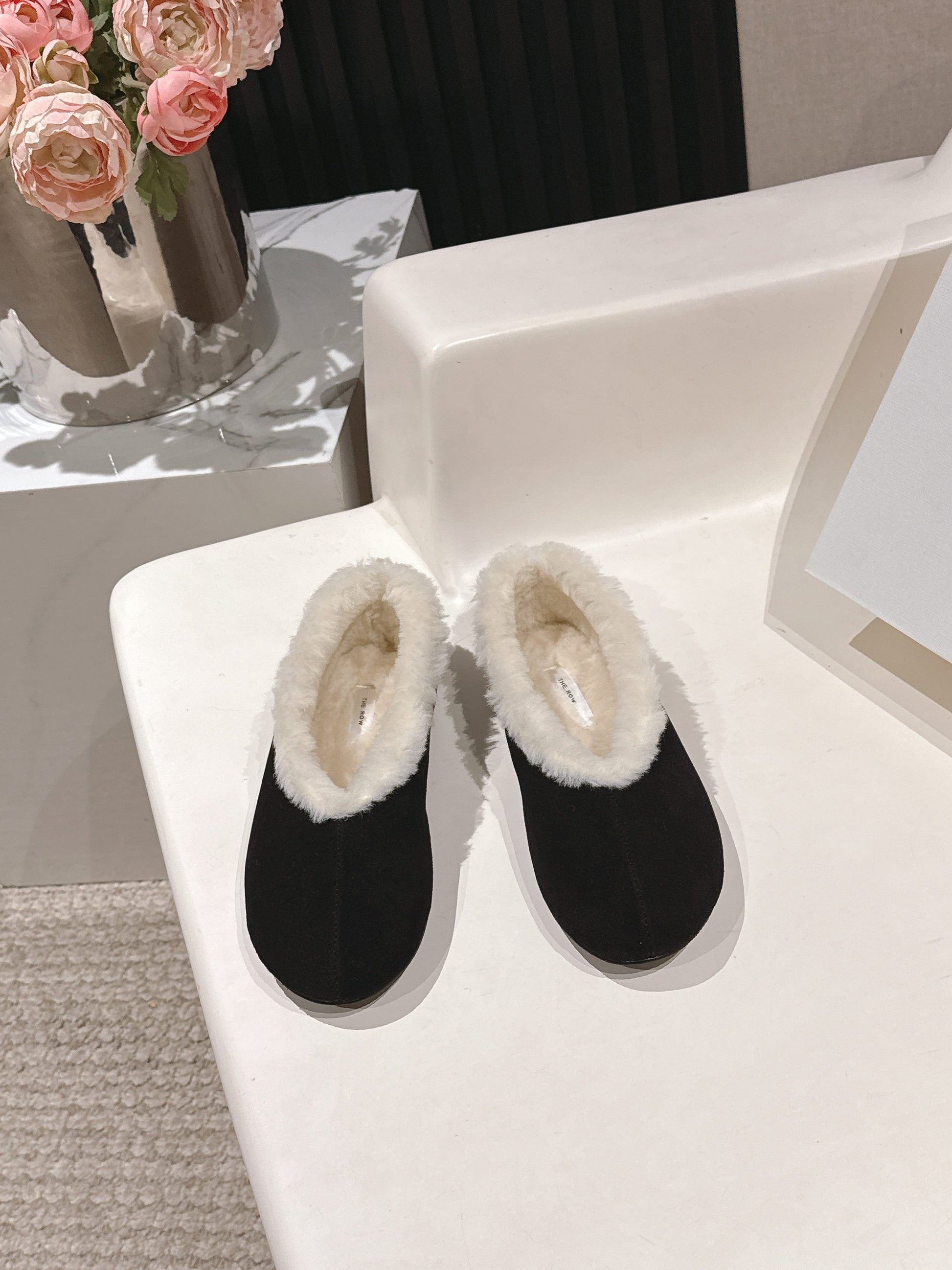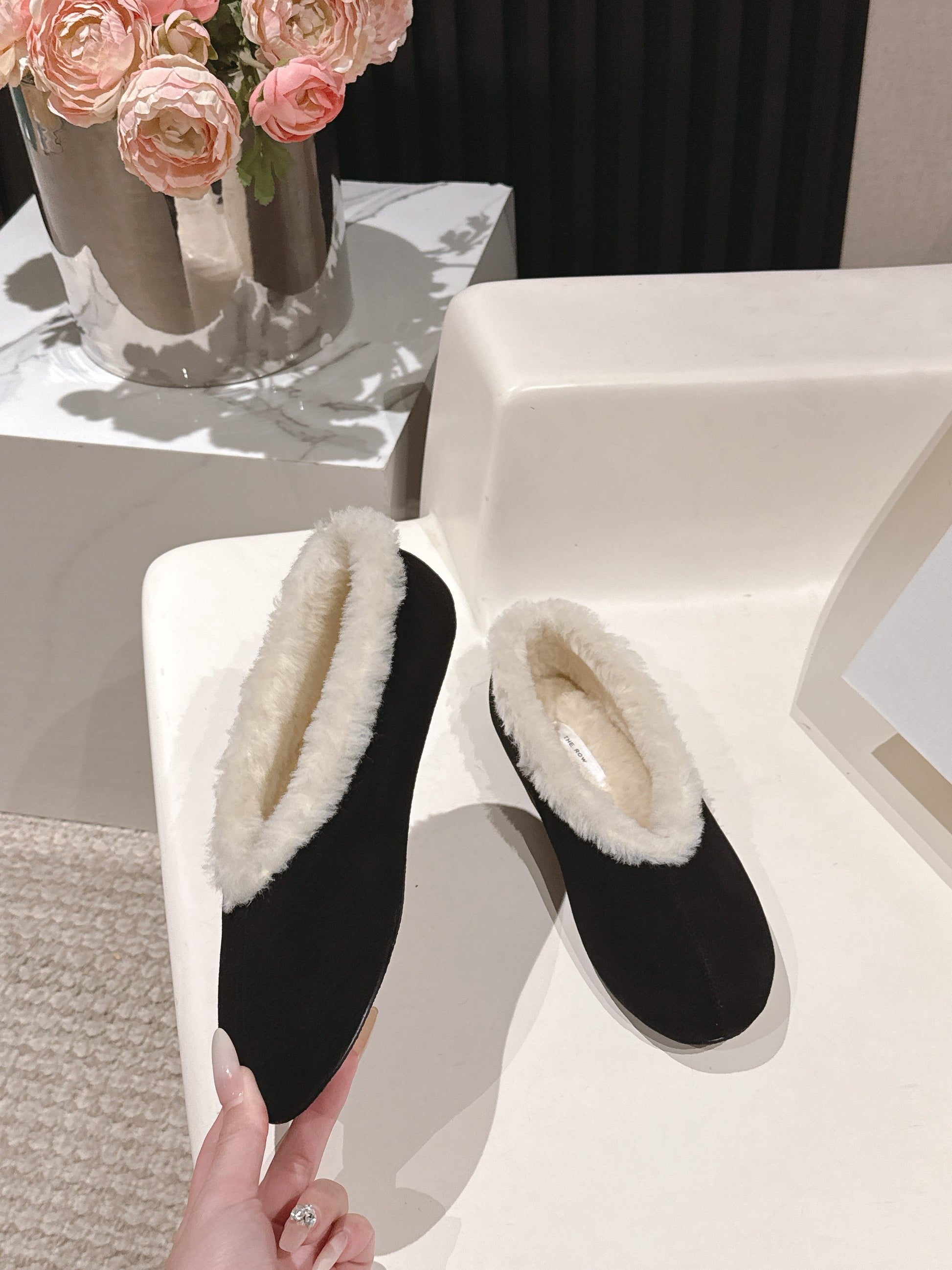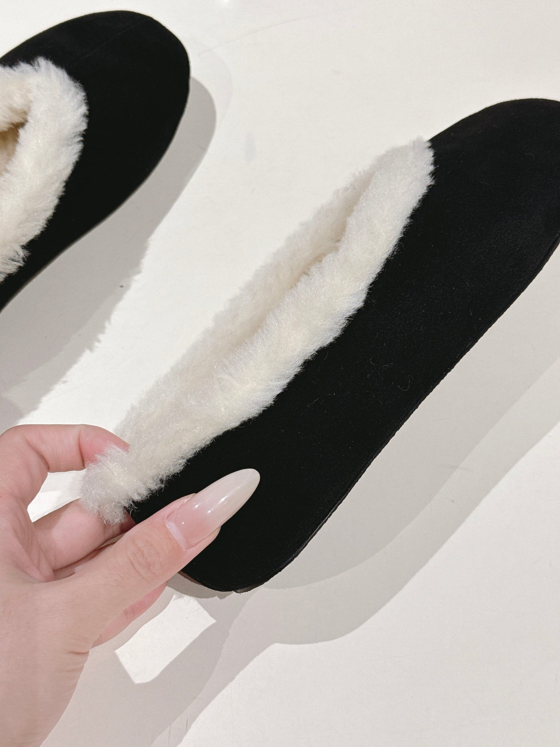 The Row 2025 Fur-lined Flat Shoe Black mix White Suede Wool 560505