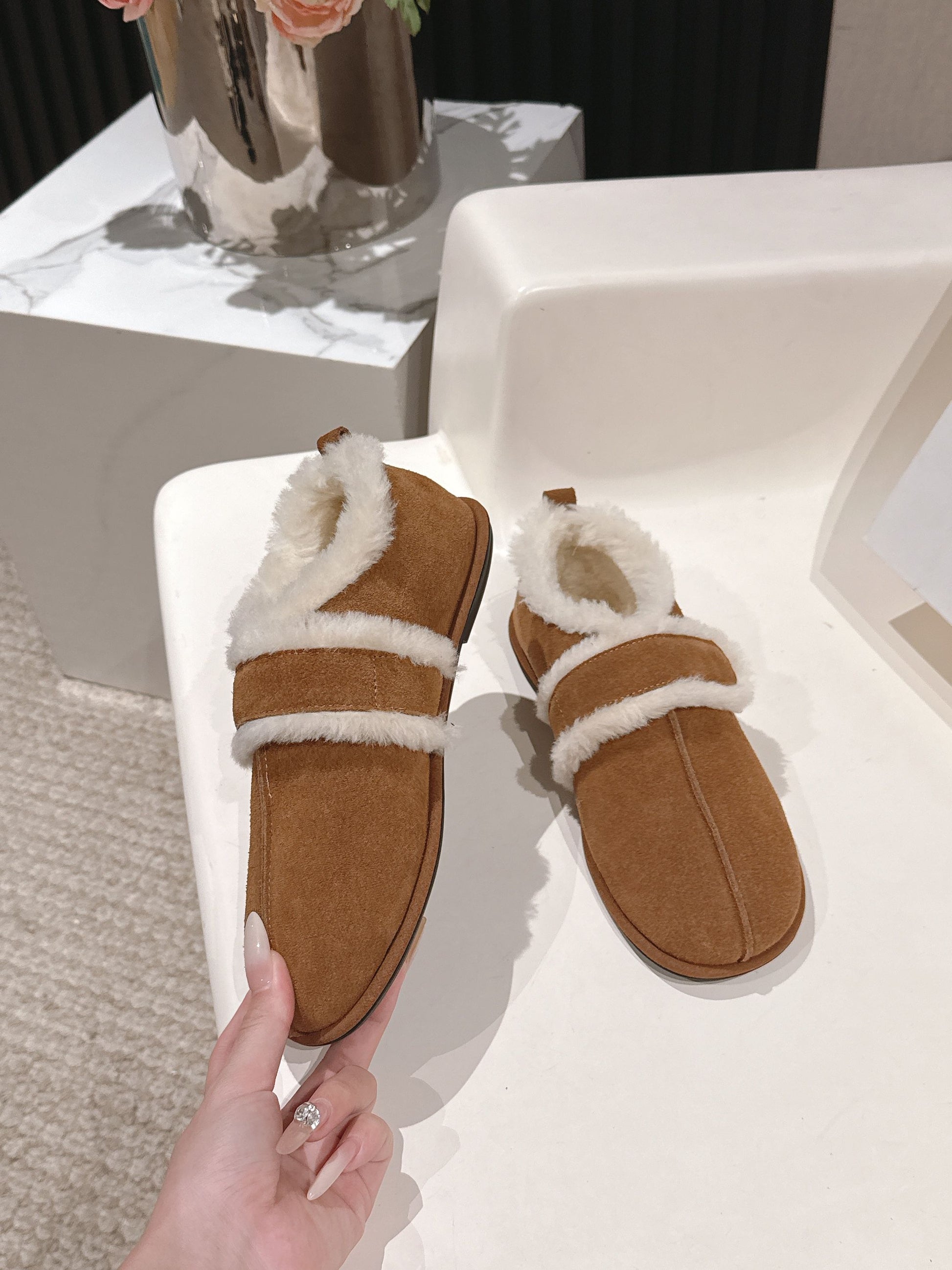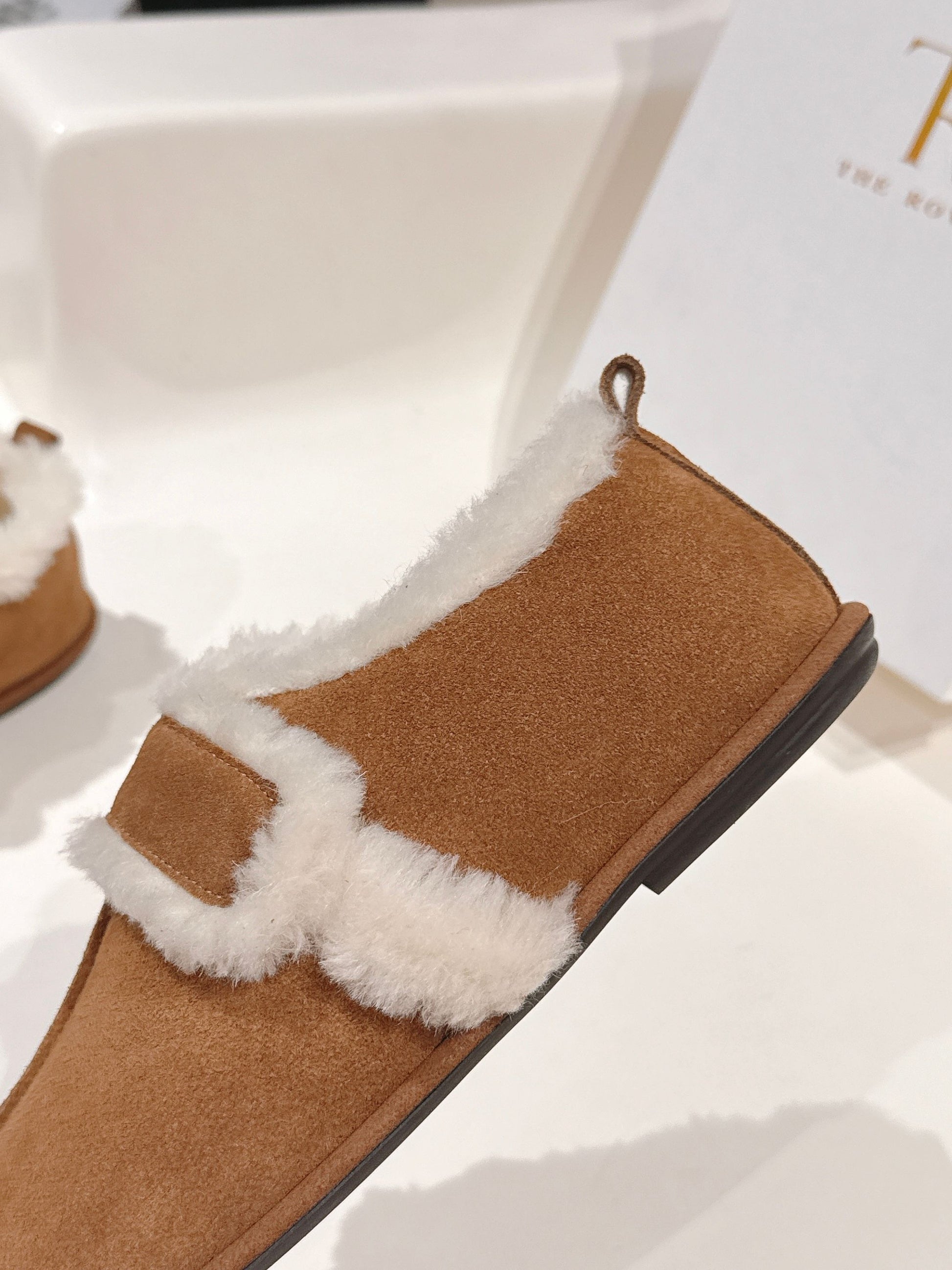 The Row 2025 Furry Shoe Light Brown White Suede Wool 560590