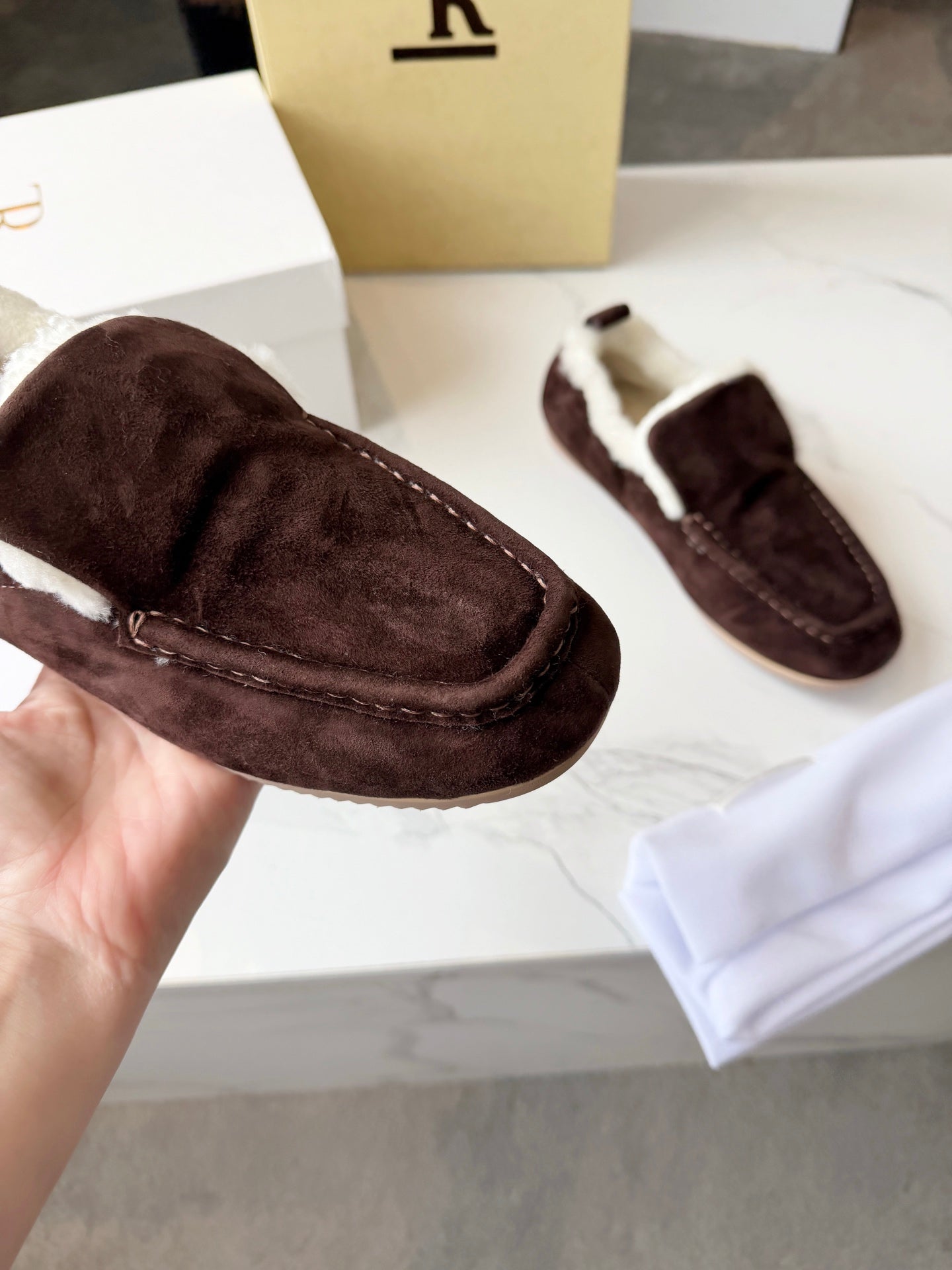 The Row 2025 Loafer Dark Brown Suede Wool 576846
