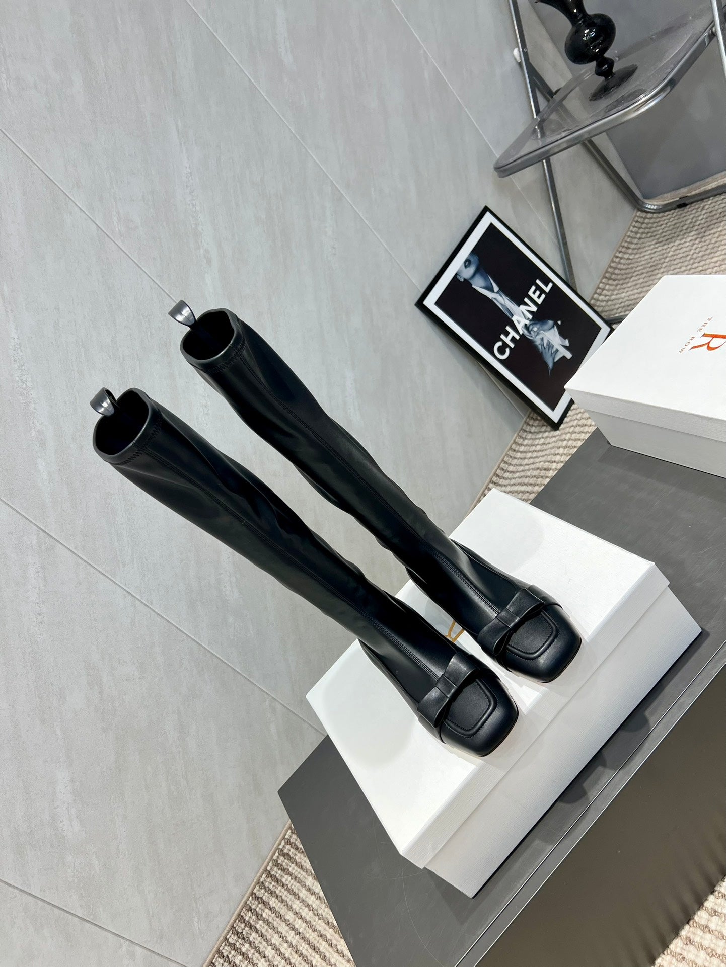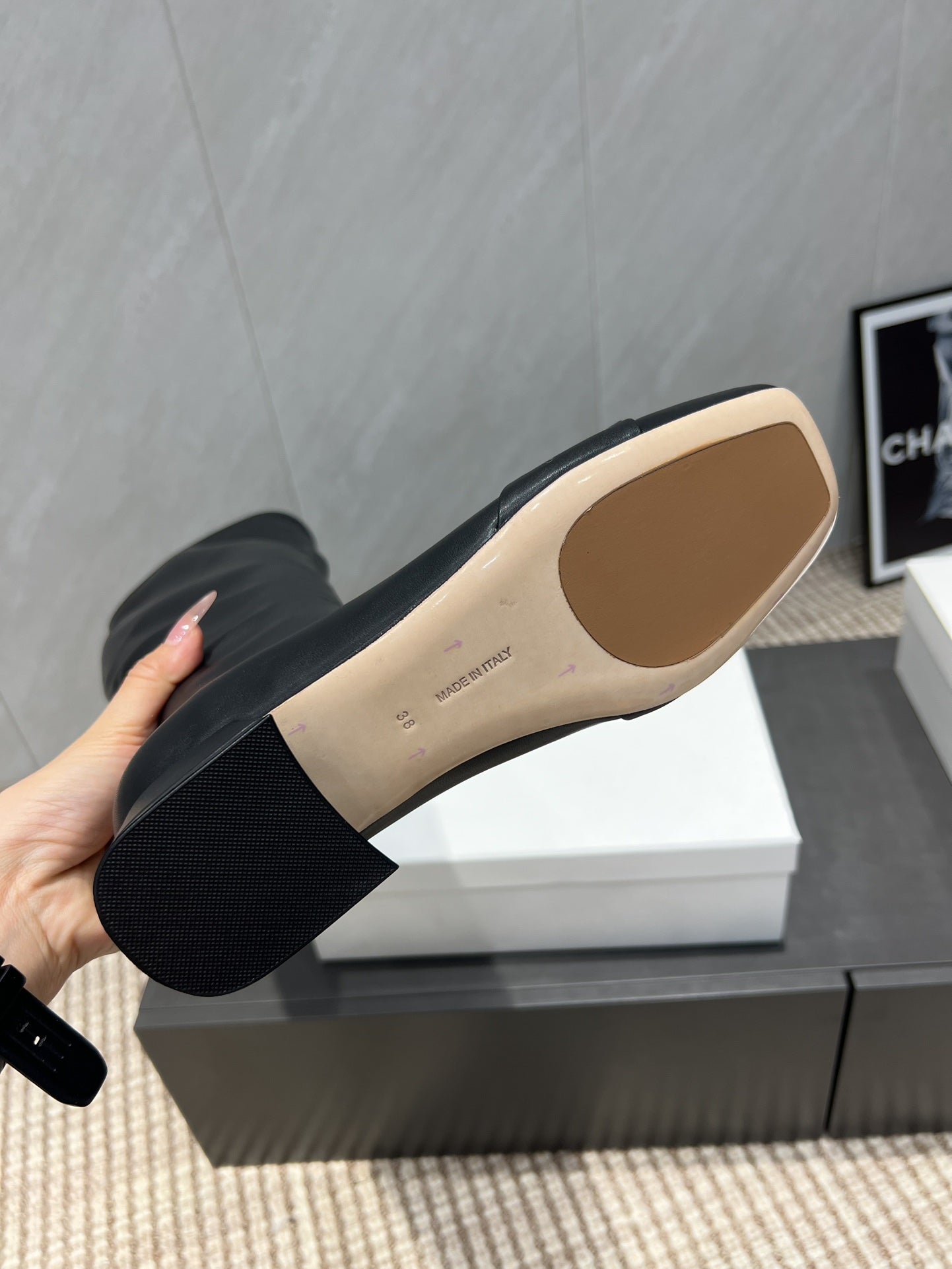 The Row 2025 Square Toe And Bow Accent Long Boot Black Sheepskin 540513