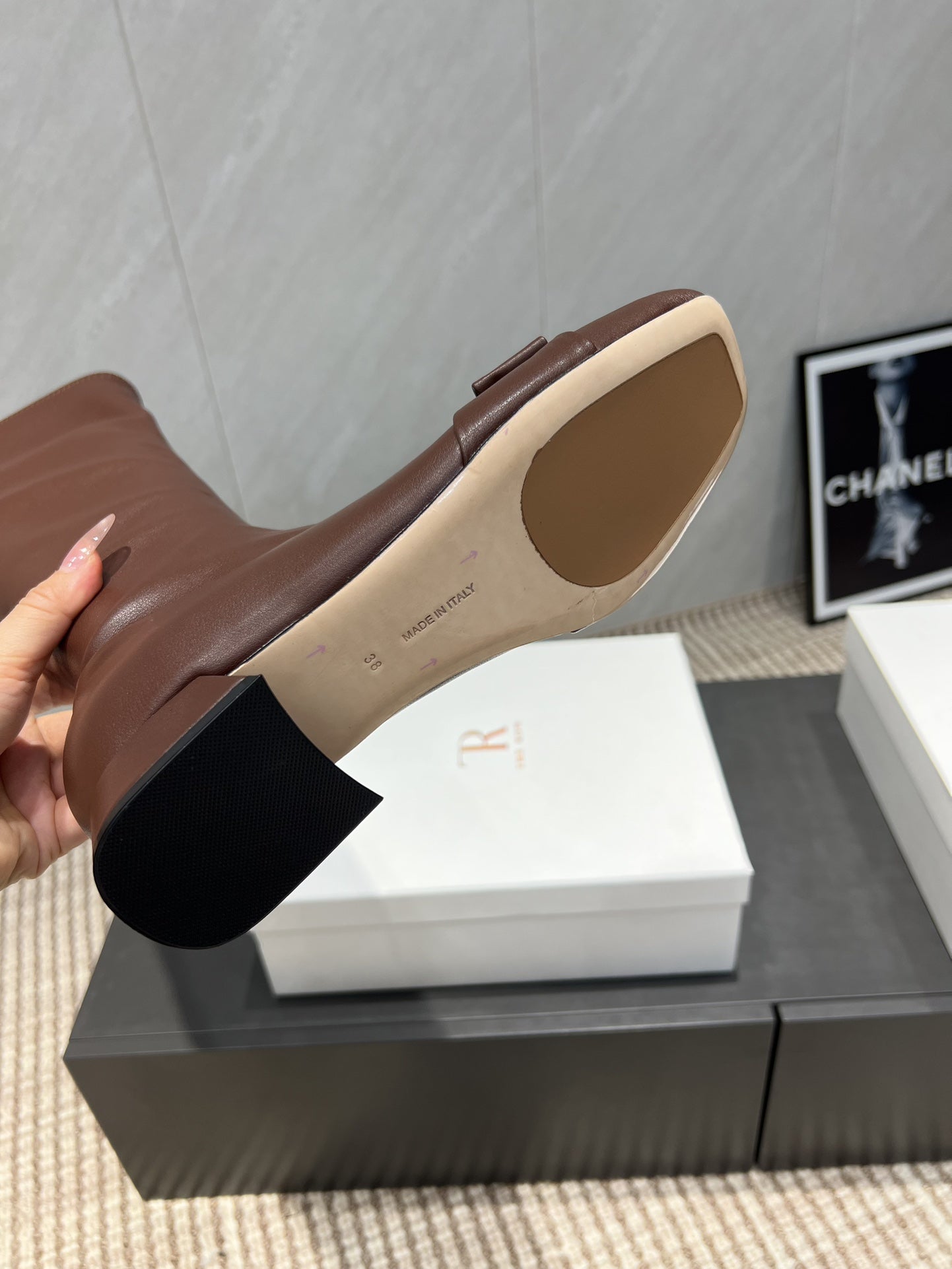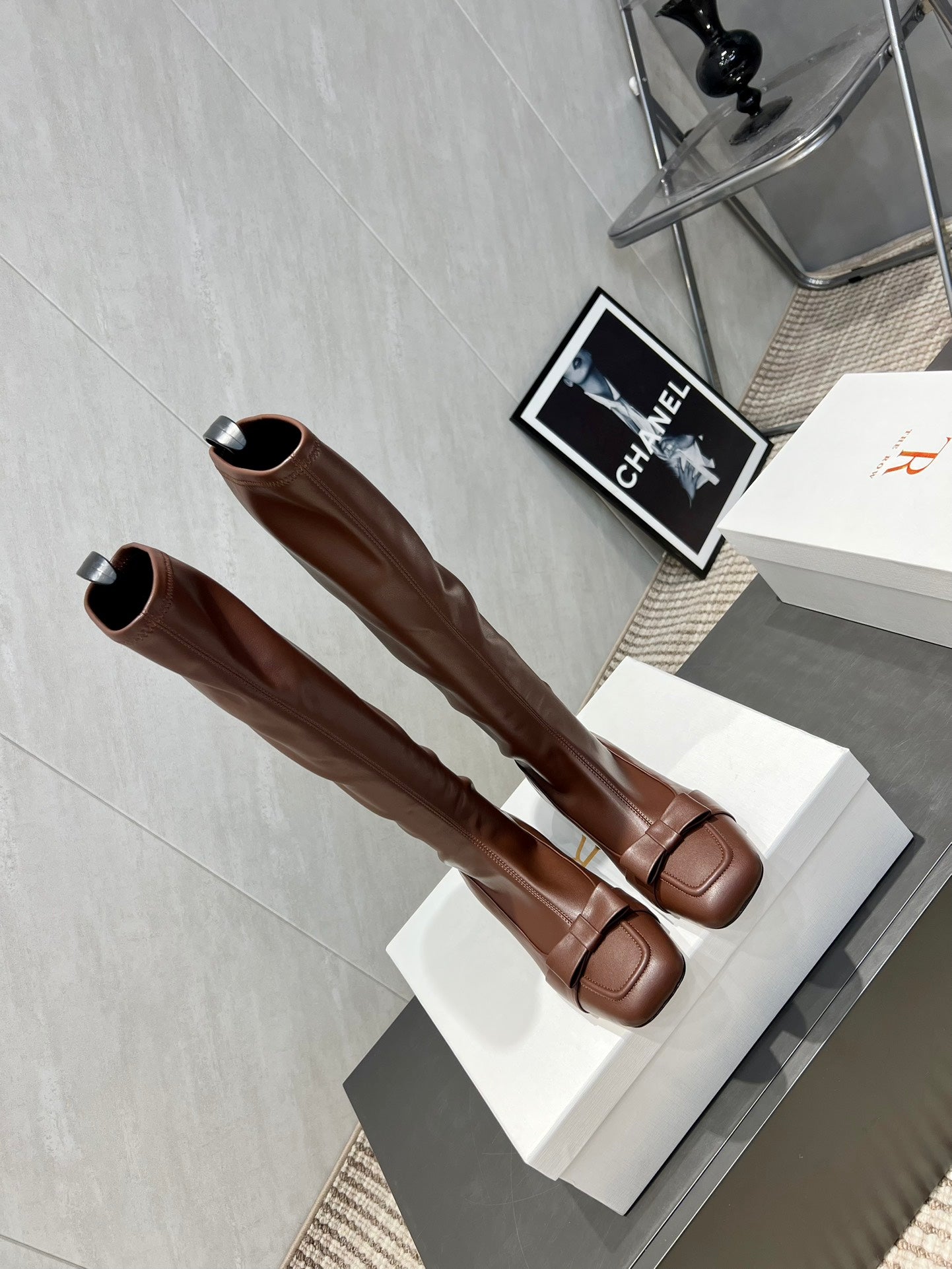 The Row 2025 Square Toe And Bow Accent Long Boot Brown Sheepskin 540514