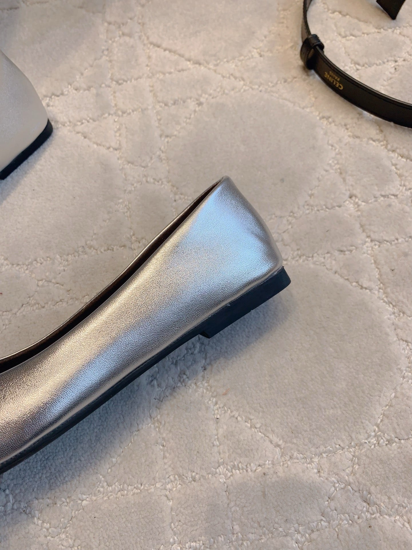 The Row 2025 Square-toe Ballet Flat Silver Sheepskin 557428