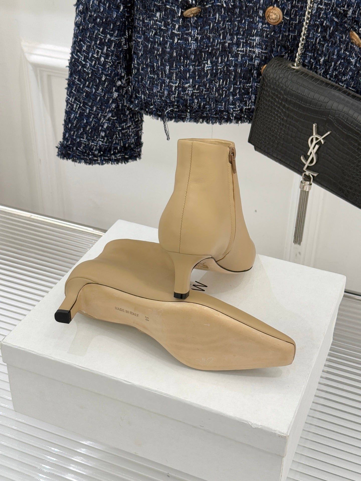 The Row 2025 Square Toe Kitten Heel Ankle Boot Beige Sheepskin 572047