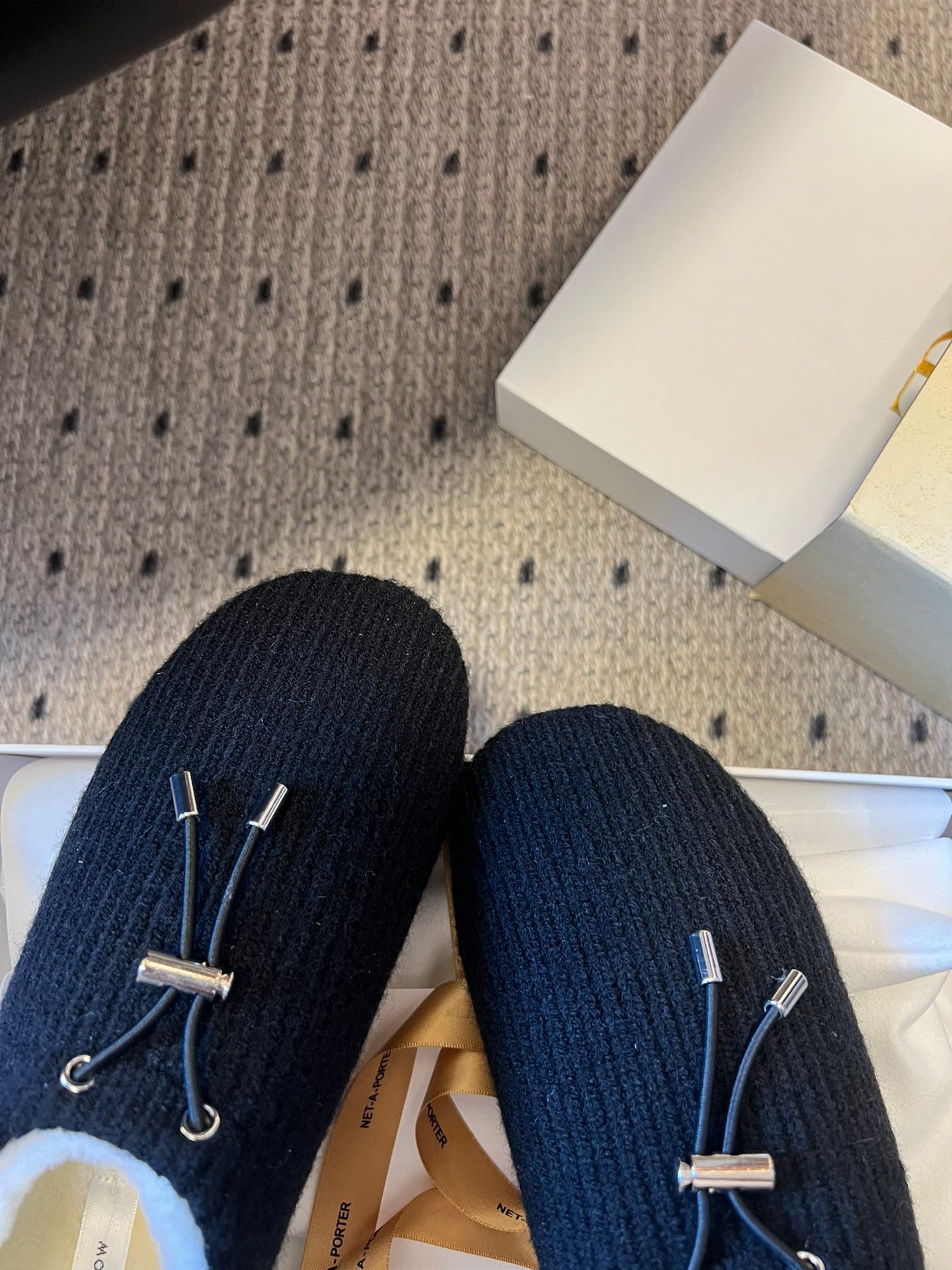 The Row 2025 Striped Furry Slipper Black White Wool 561636