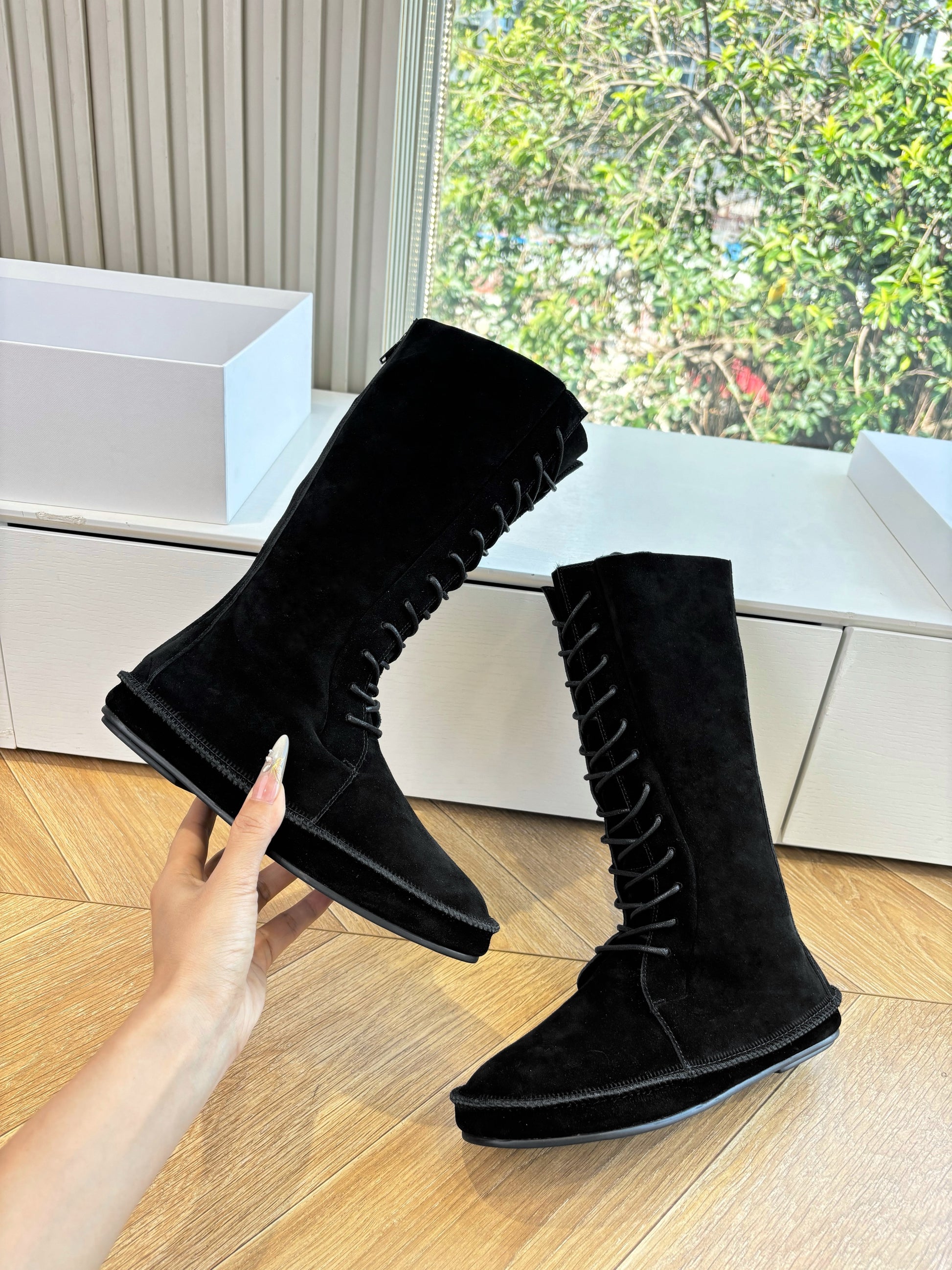 The Row 2025 Tyler Lace-up Boot Black Suede 549347