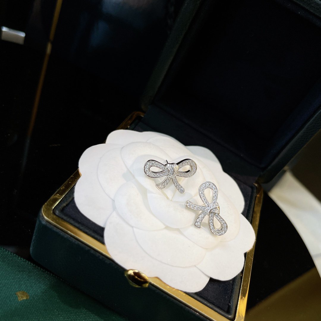 TILDA BOW MINI SILVER DIAMOND STUD EARRINGS