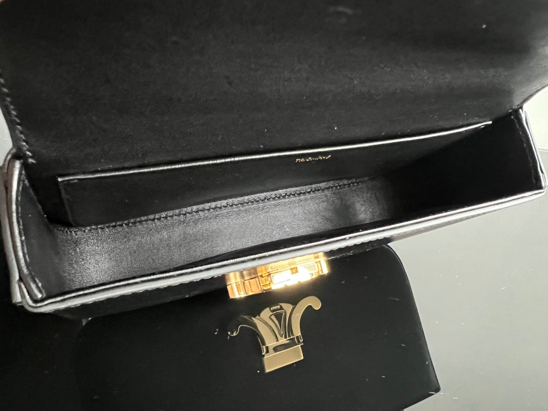 TRIPHOME 20 BLACK COWHIDE LEATHER CHAIN STRAP BAG
