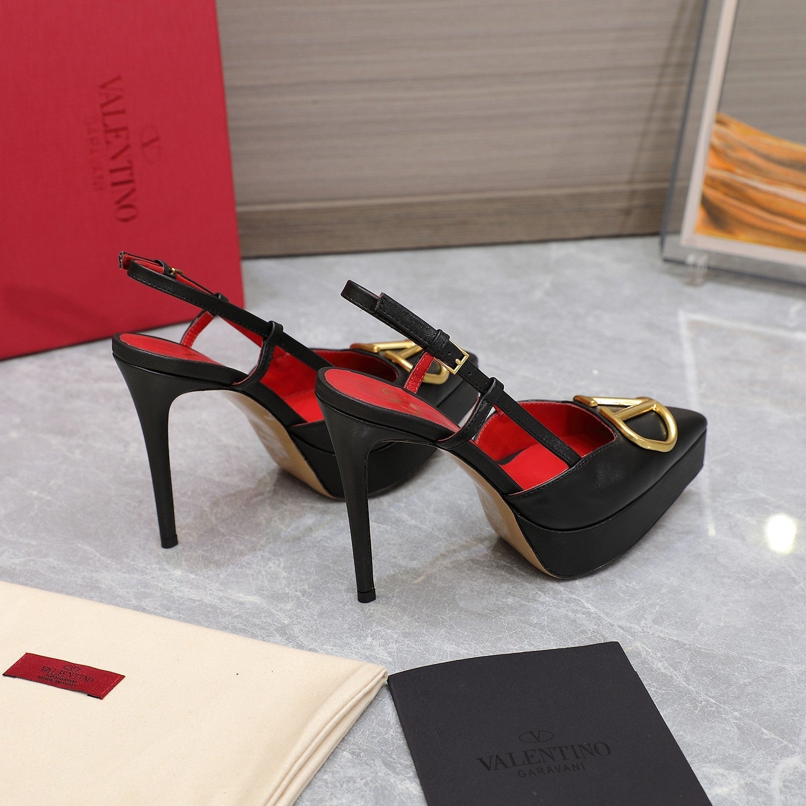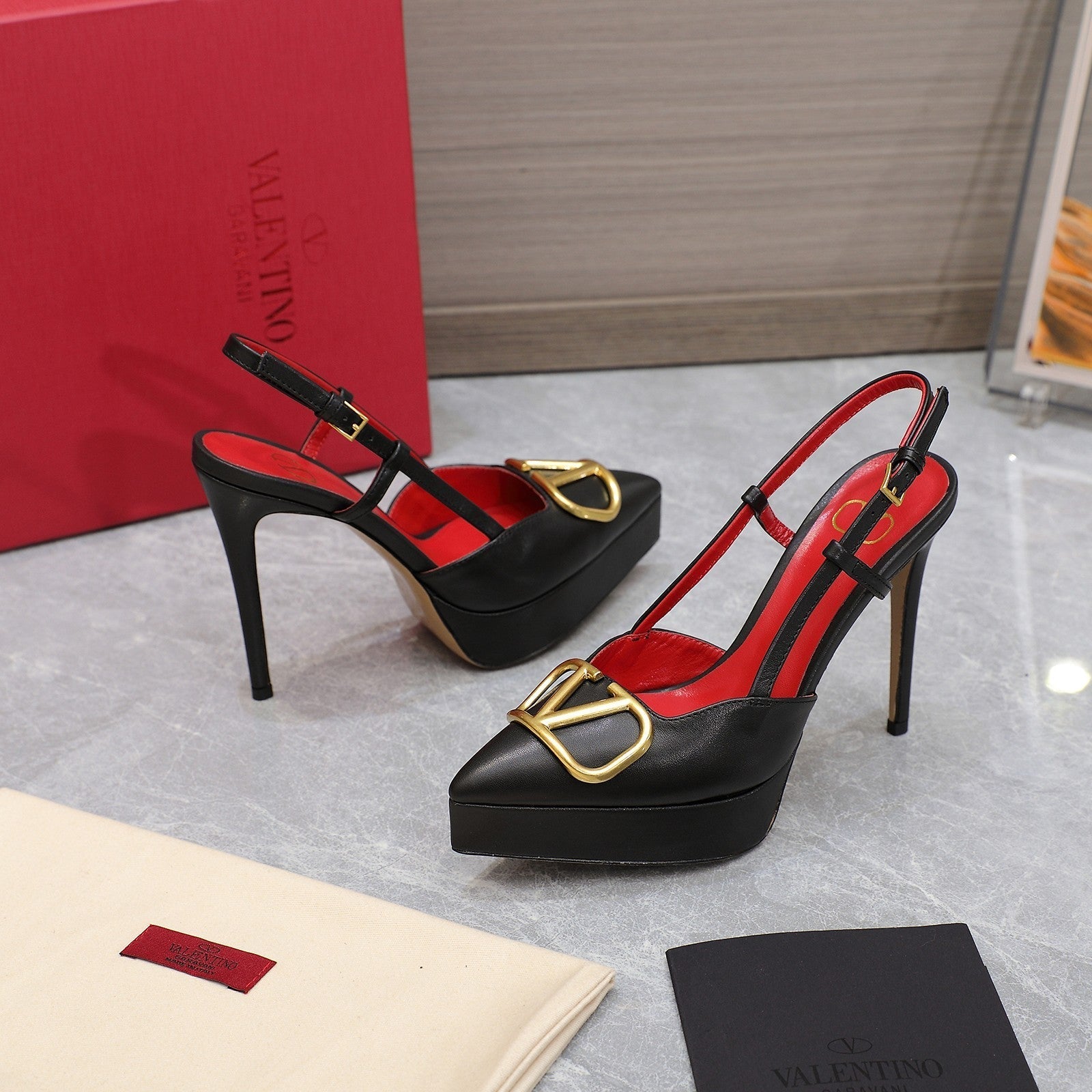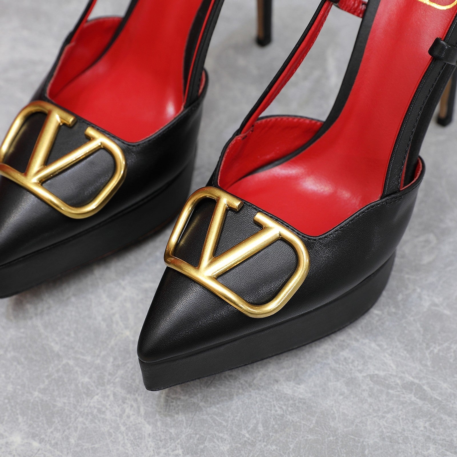 VALENTINO GARAVANI VLOGO PLATFORM SLING BACK 120 BLACK RED COWHIDE 392142