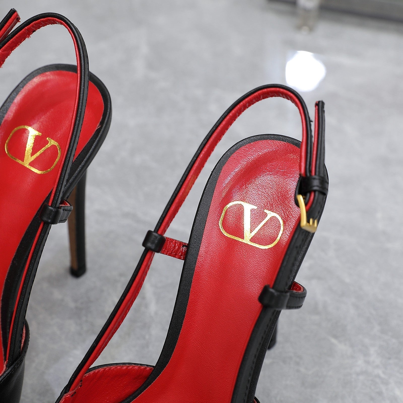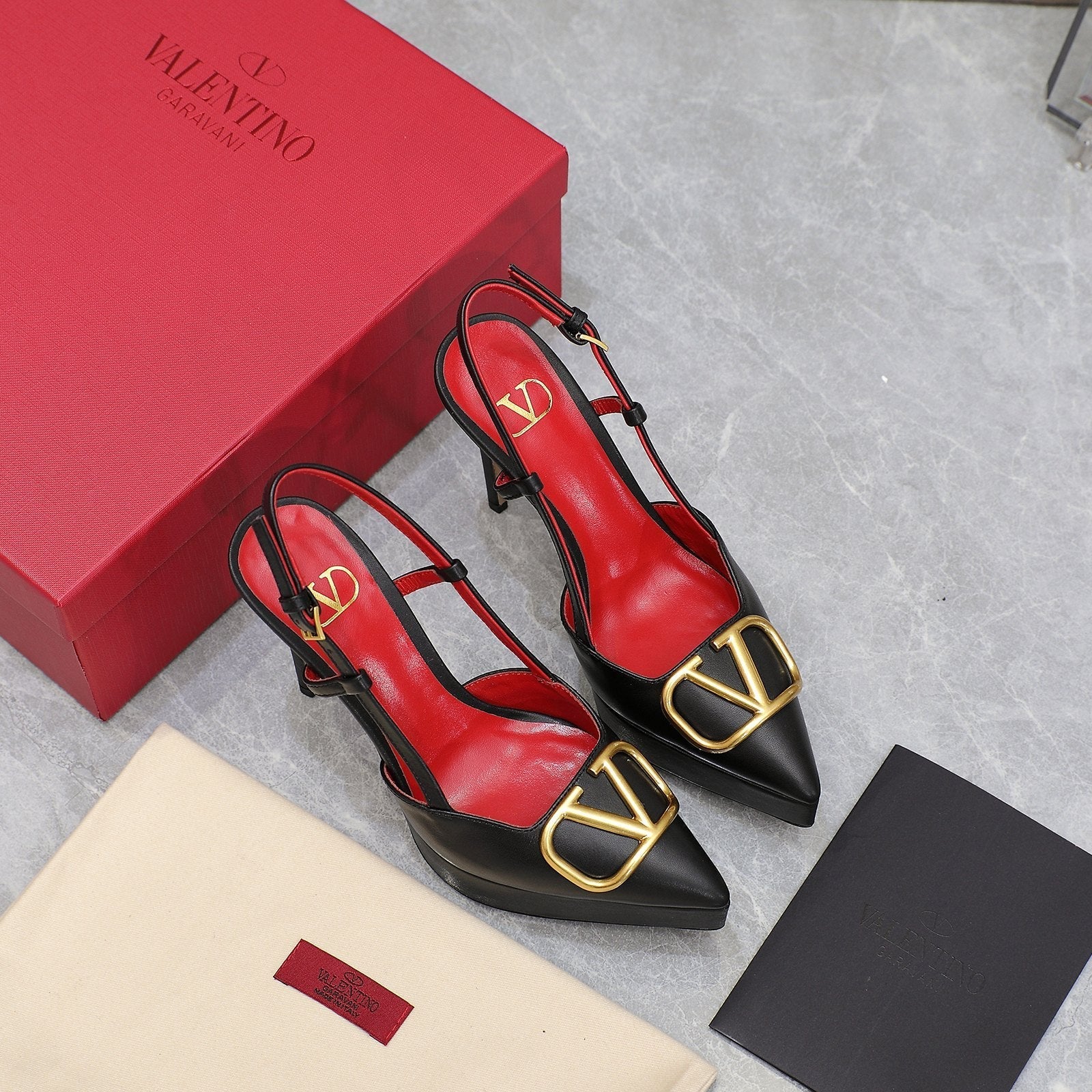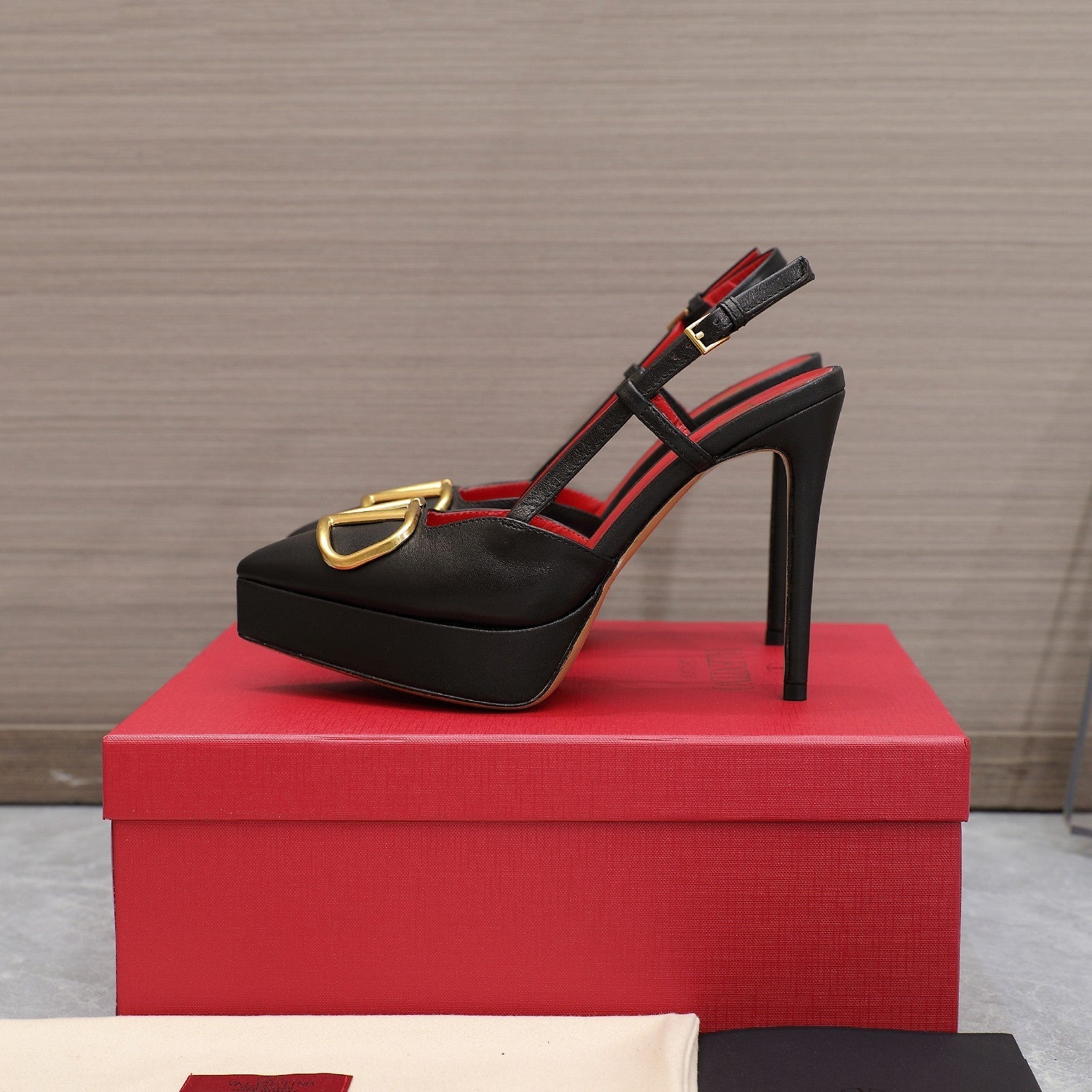 VALENTINO GARAVANI VLOGO PLATFORM SLING BACK 120 BLACK RED COWHIDE 392142