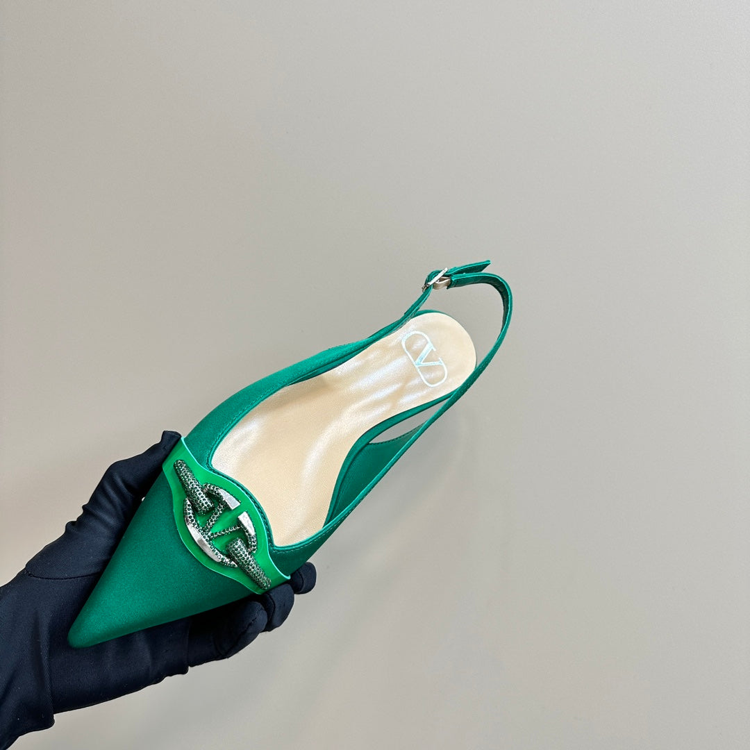 Valentino Slingback Pump In Dark Green Mix Beige Lambskin 999002