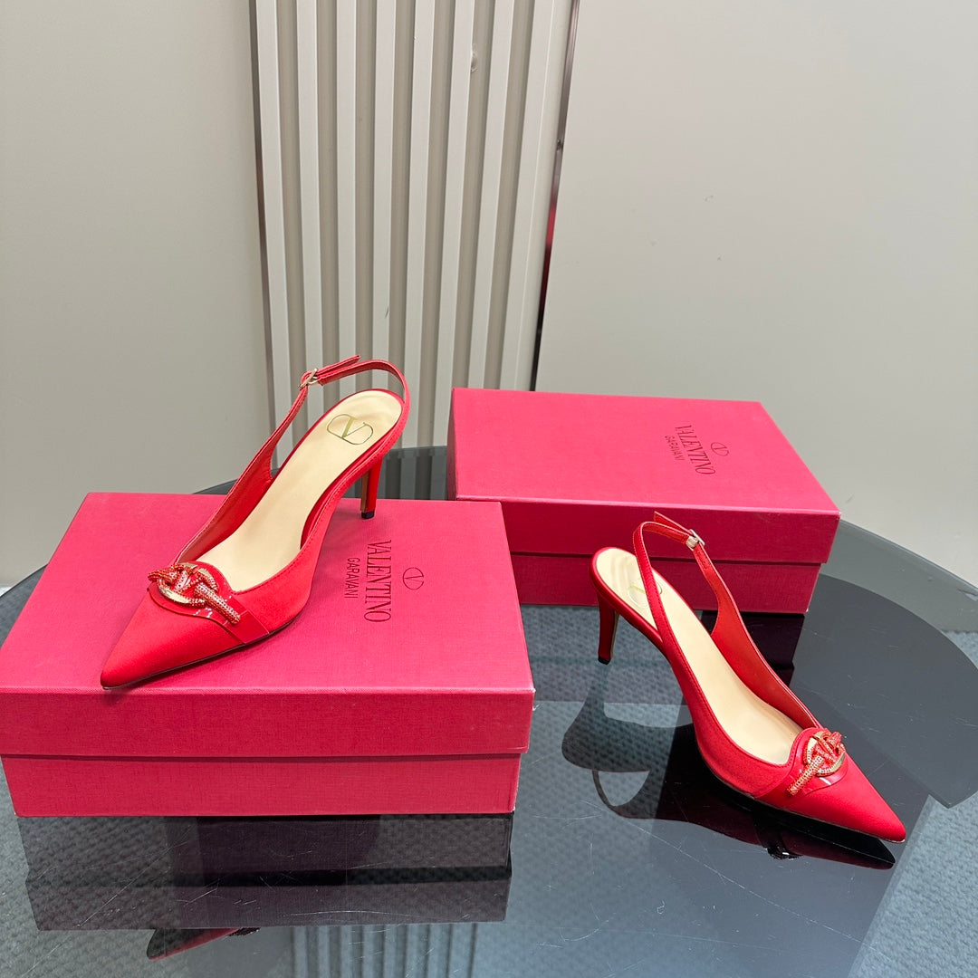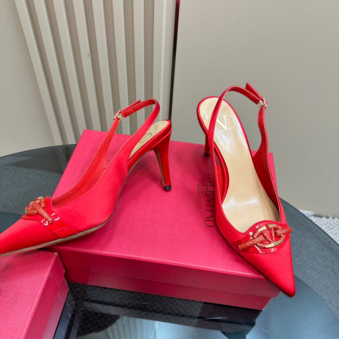 Valentino Slingback Pump 80mm In Red Mix Beige Lambskin 999021