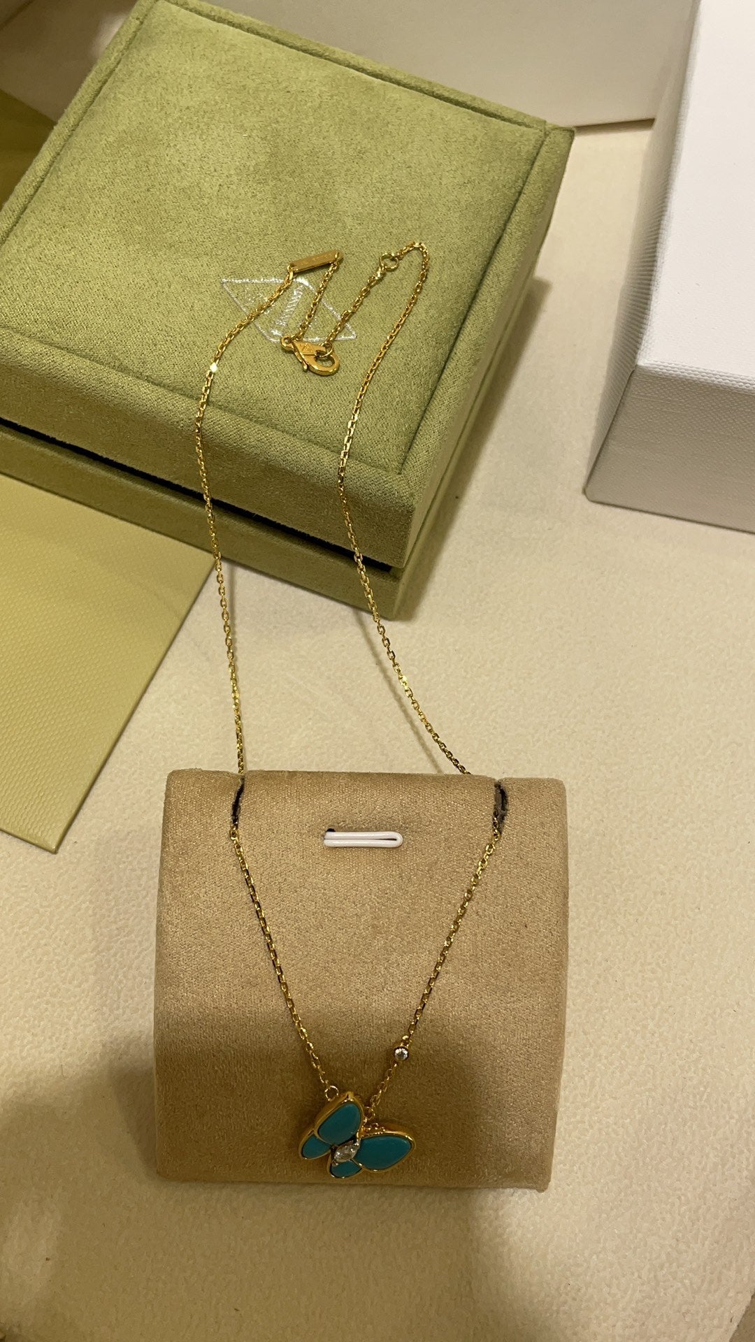 VCA Butterfly Turquoise Necklace Gold 1 Diamond