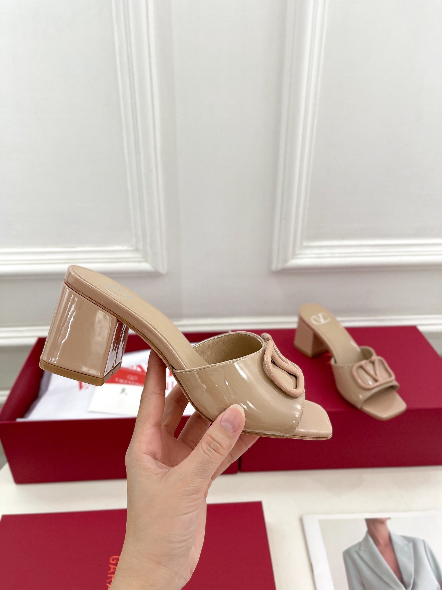 Vlogo 60 Patent Sandal Beige Leather