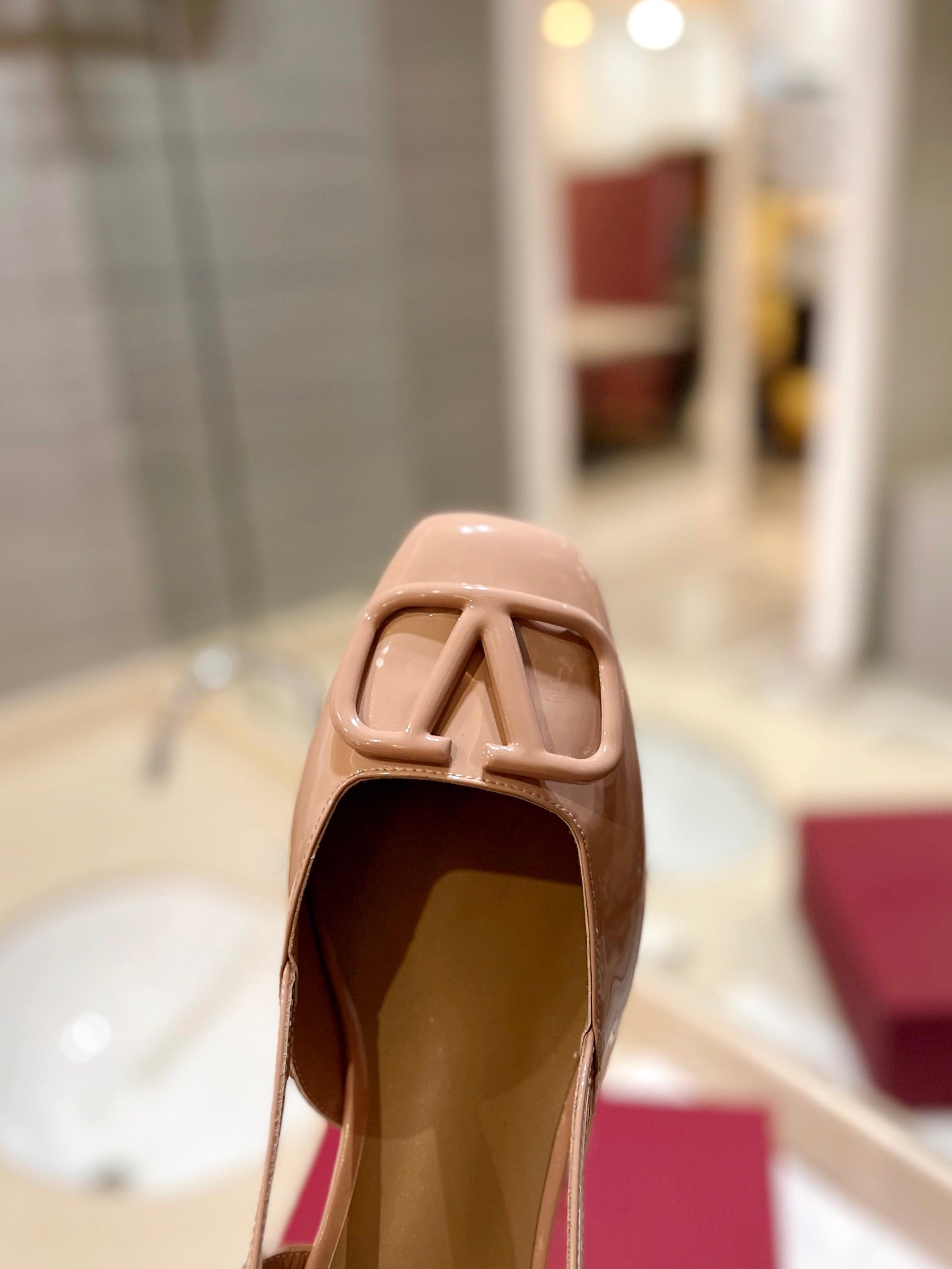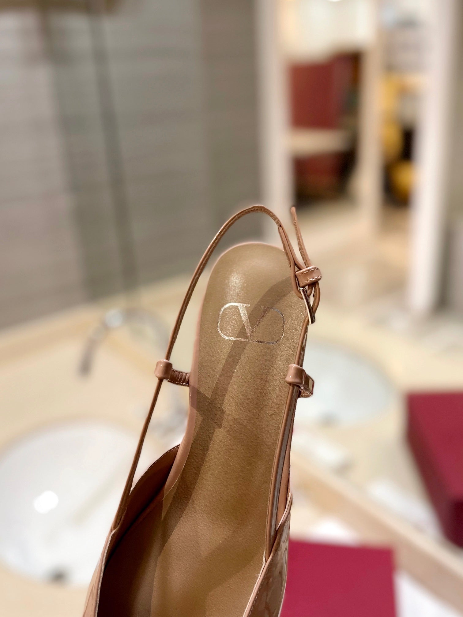 VLOGO BEIGE PATENT LEATHER SLINGBACK FLATS