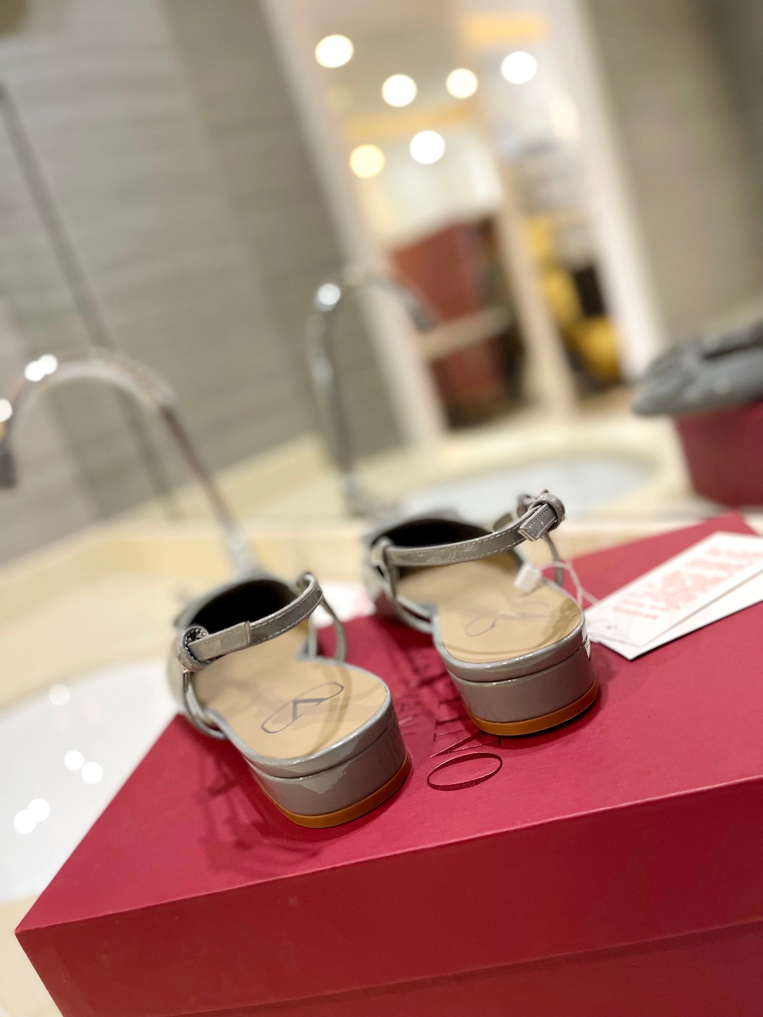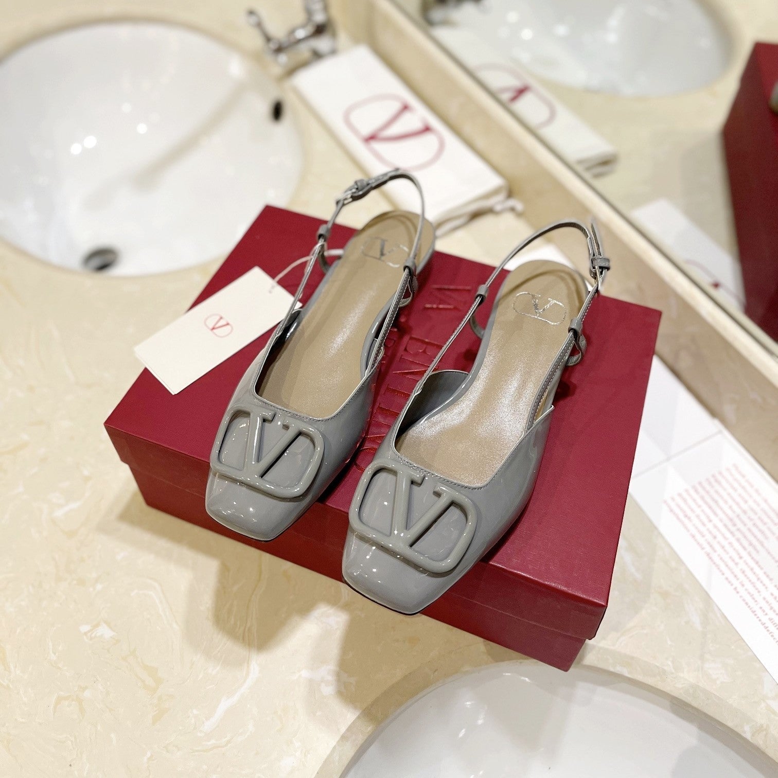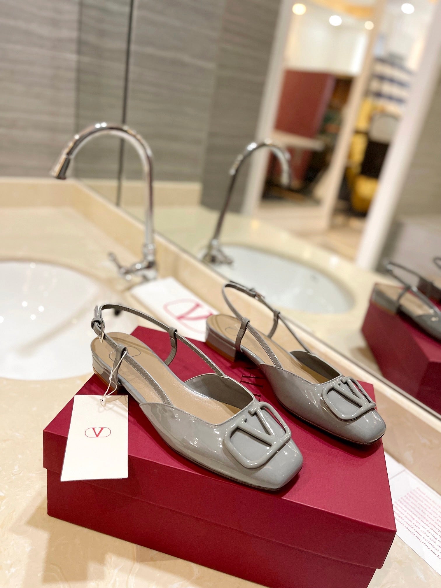 VLOGO GREY PATENT LEATHER SLINGBACK FLATS