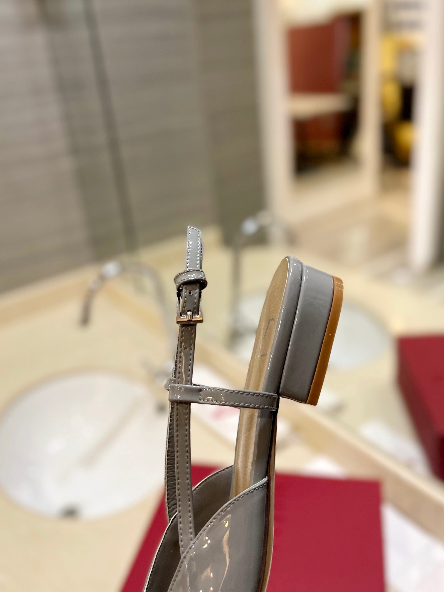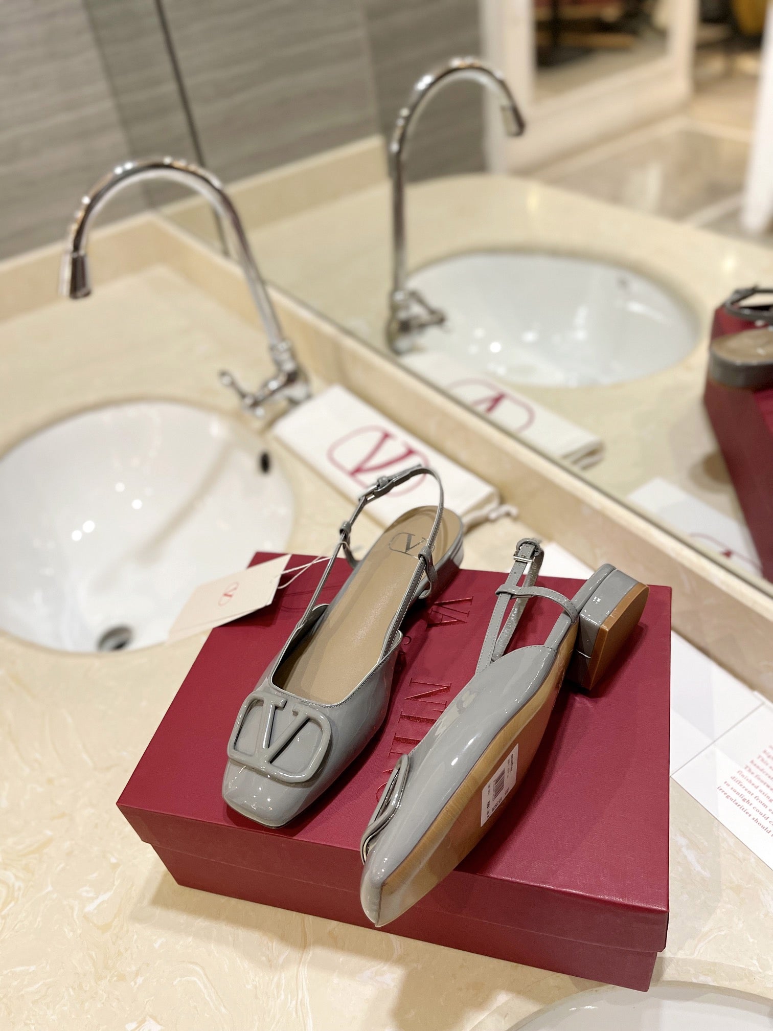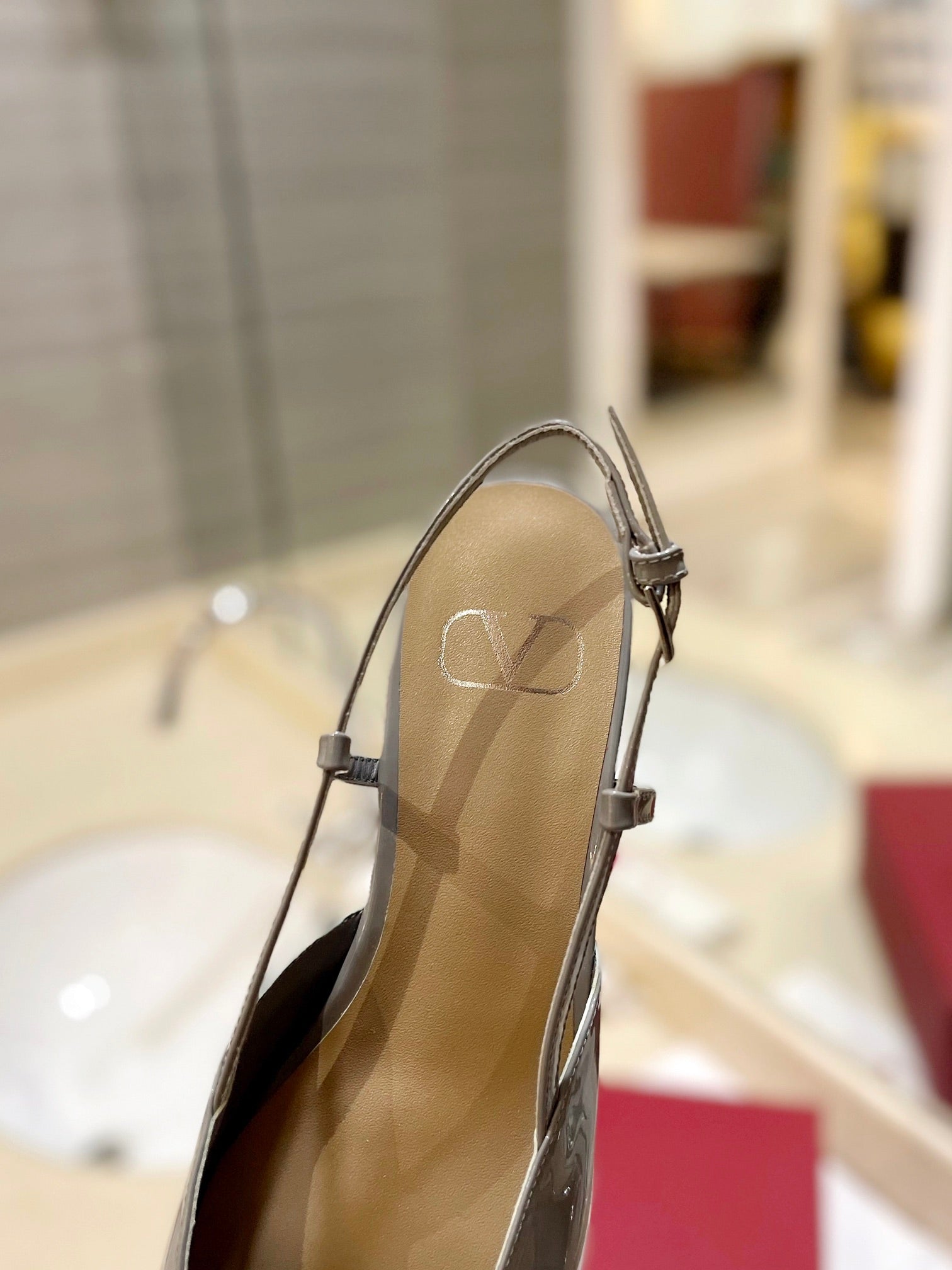 VLOGO GREY PATENT LEATHER SLINGBACK FLATS