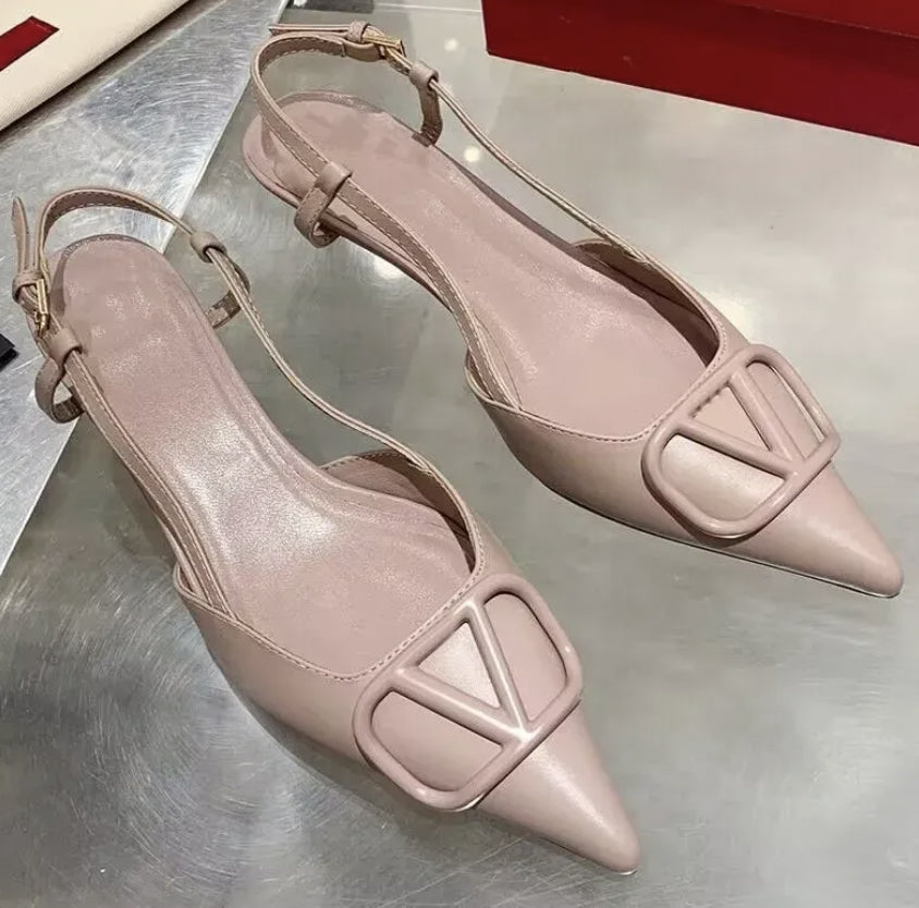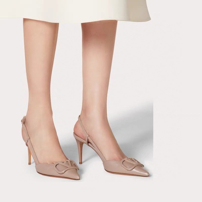 VLOGO SIGNATURE NUDE CALFSKIN SLINGBACK PUMP