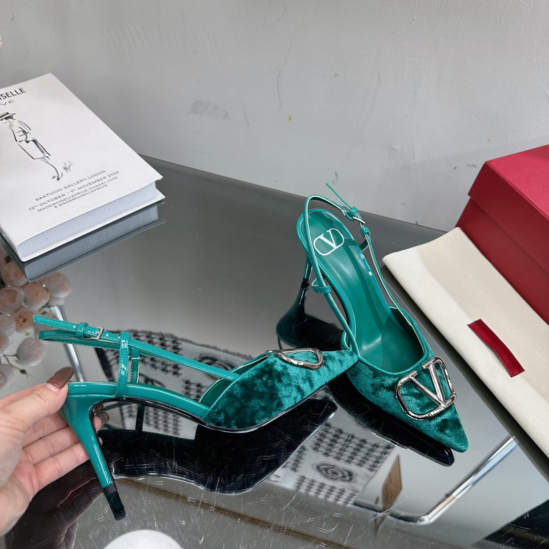 Vlogo Signature Slingback Dark Green Calfskin and Velvet