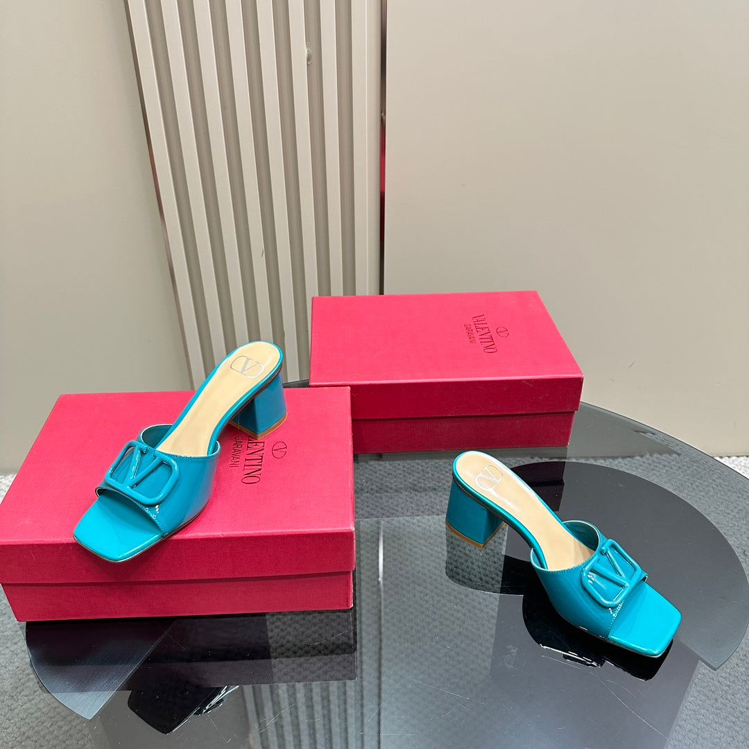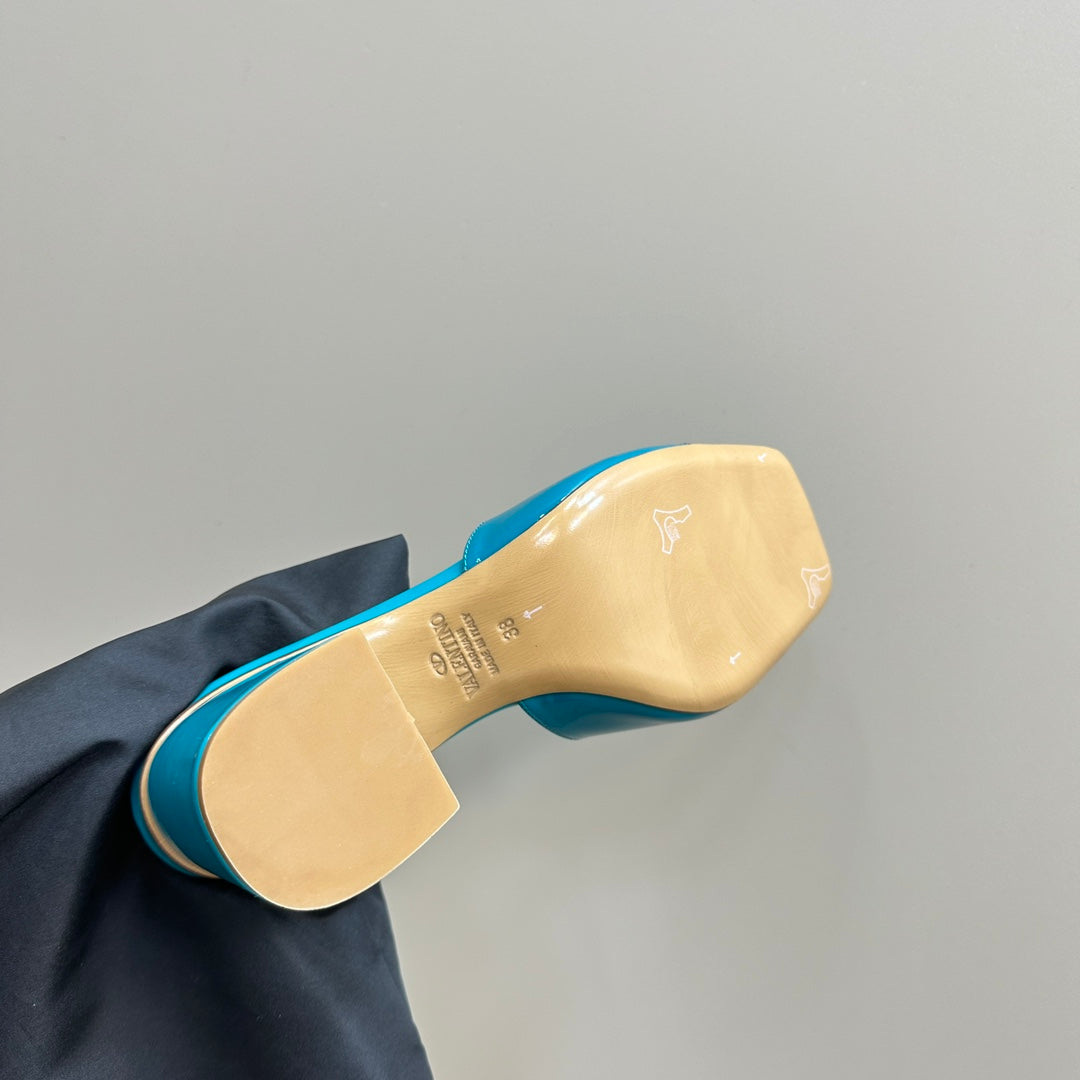 Vogo Signature High Shine Open Toe Sandals In Aqua Blue Glossy Lambskin 839819