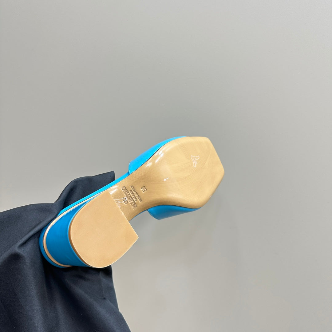 Vogo Signature High Shine Open Toe Sandals In Blue Glossy Lambskin 839817