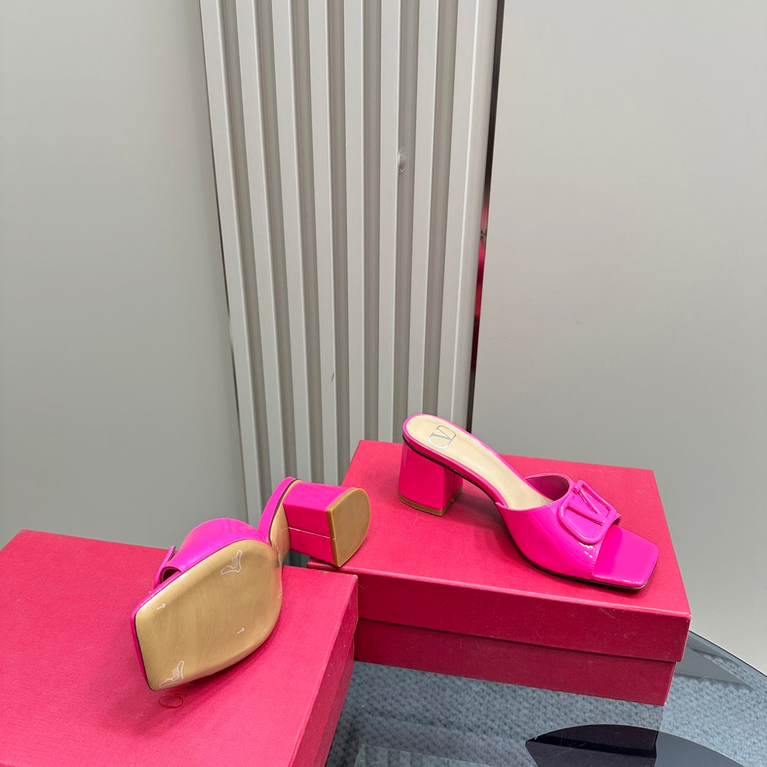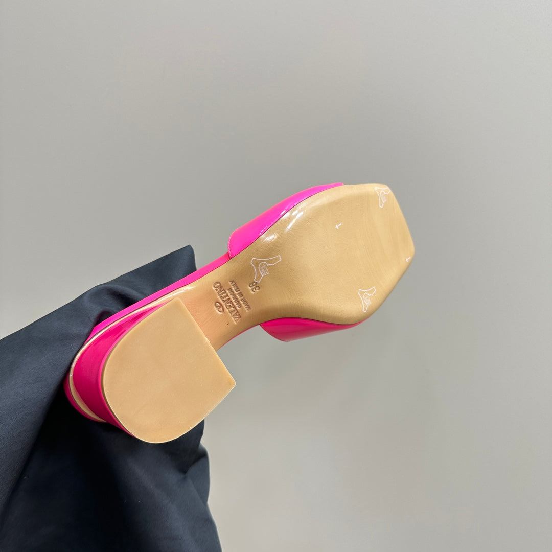 Vogo Signature High Shine Open Toe Sandals In Dark Lotus Pink Glossy Lambskin 839823