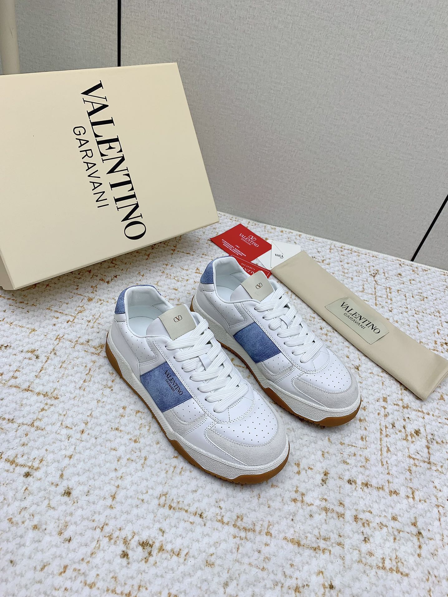VT 25 Low Top Garavani Sneaker Denim White Cowhide