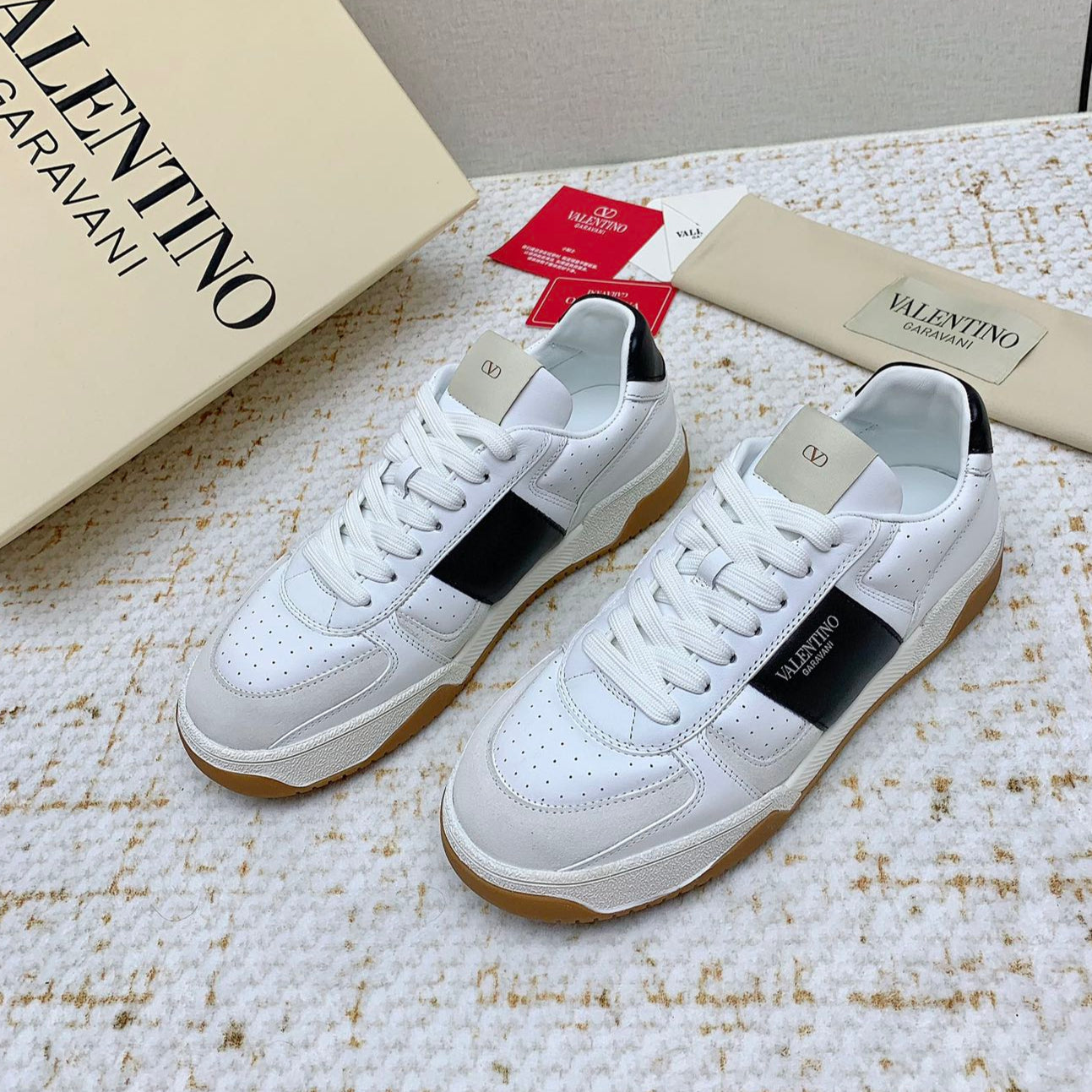 VT 25 Low Top Garavani Sneaker White Blue Cowhide 331678