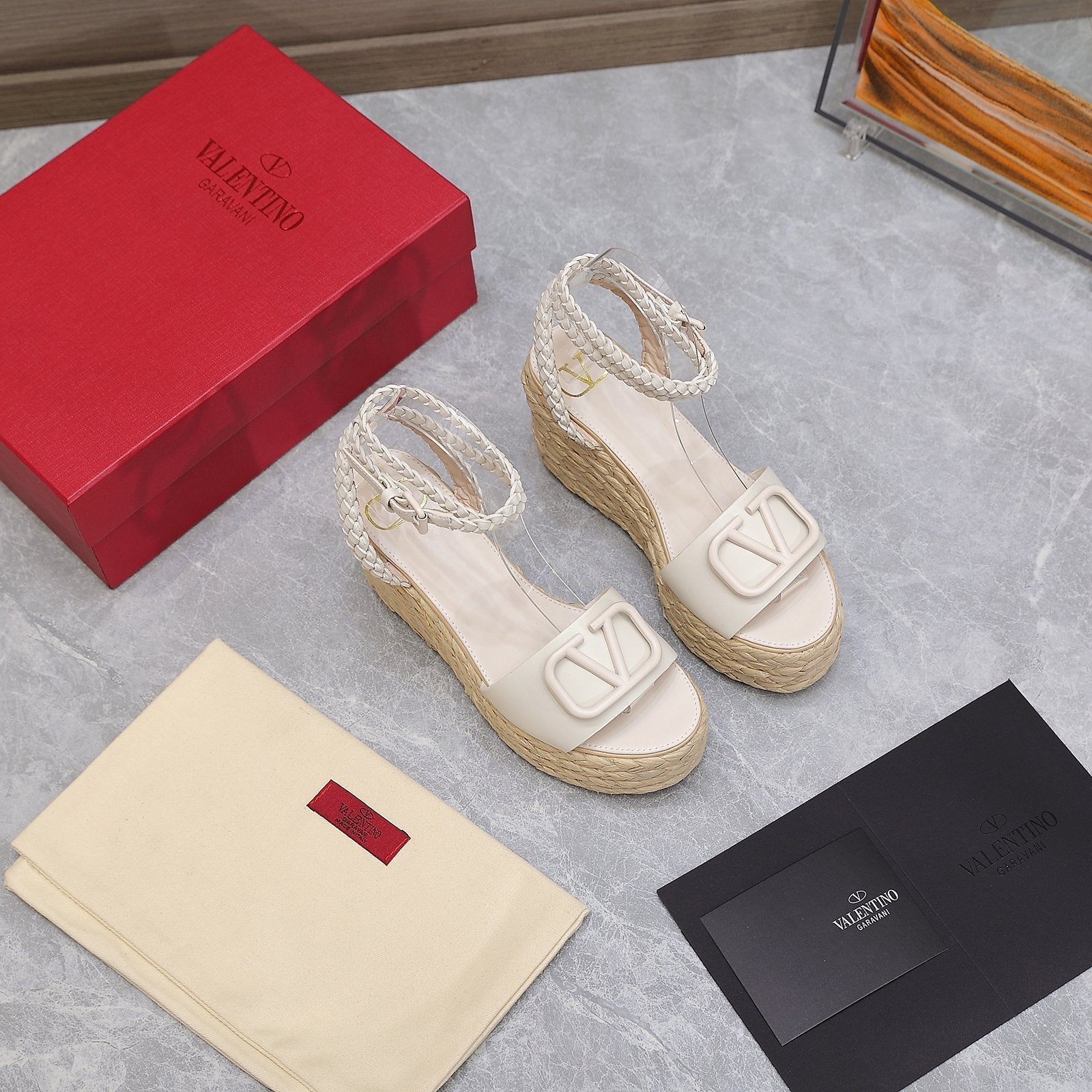 VT Wedge Platform Sandals White Cowhide Espadrilles