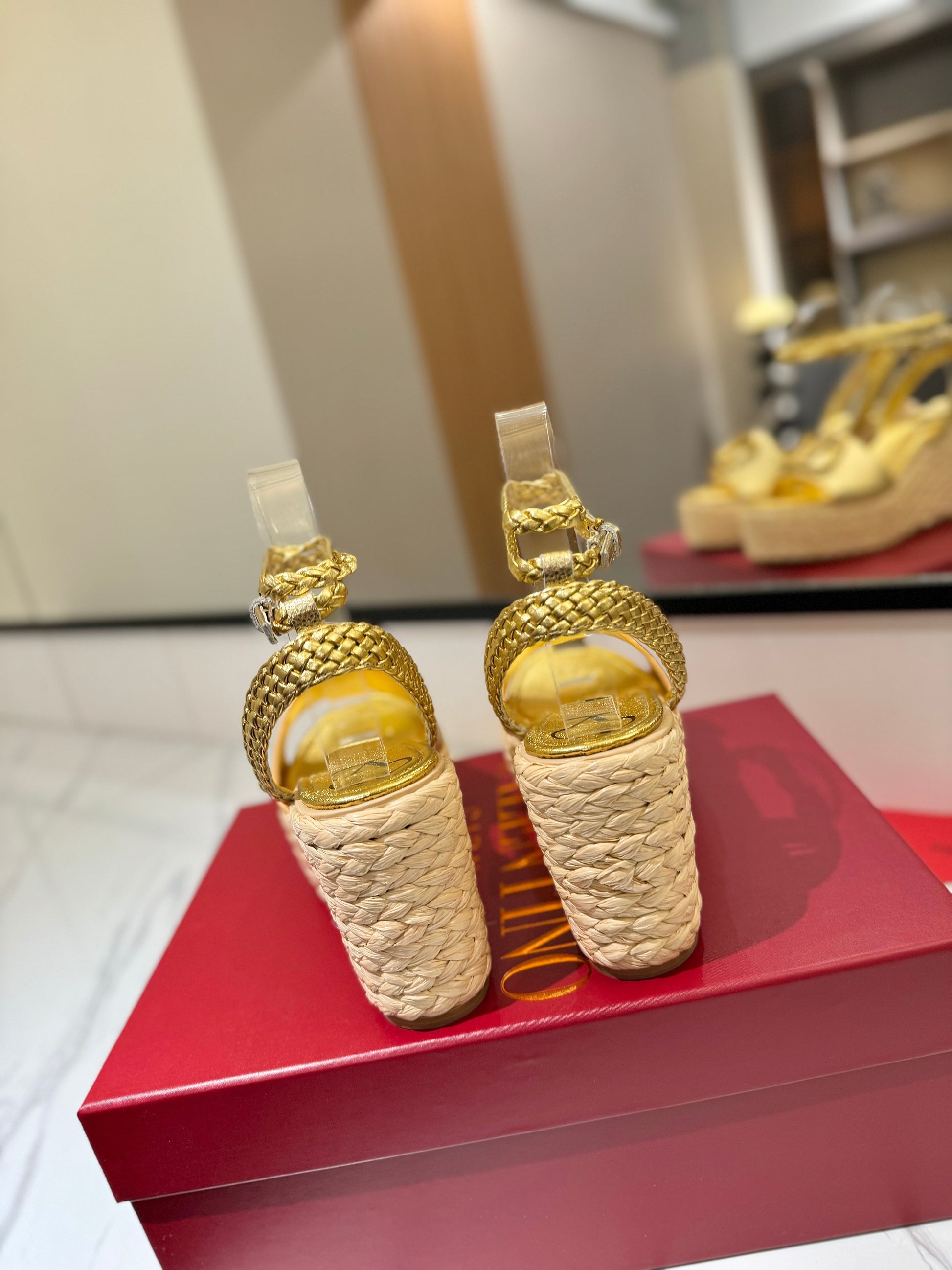 VT Espadrilles Platform Sandals Gold Calfskin