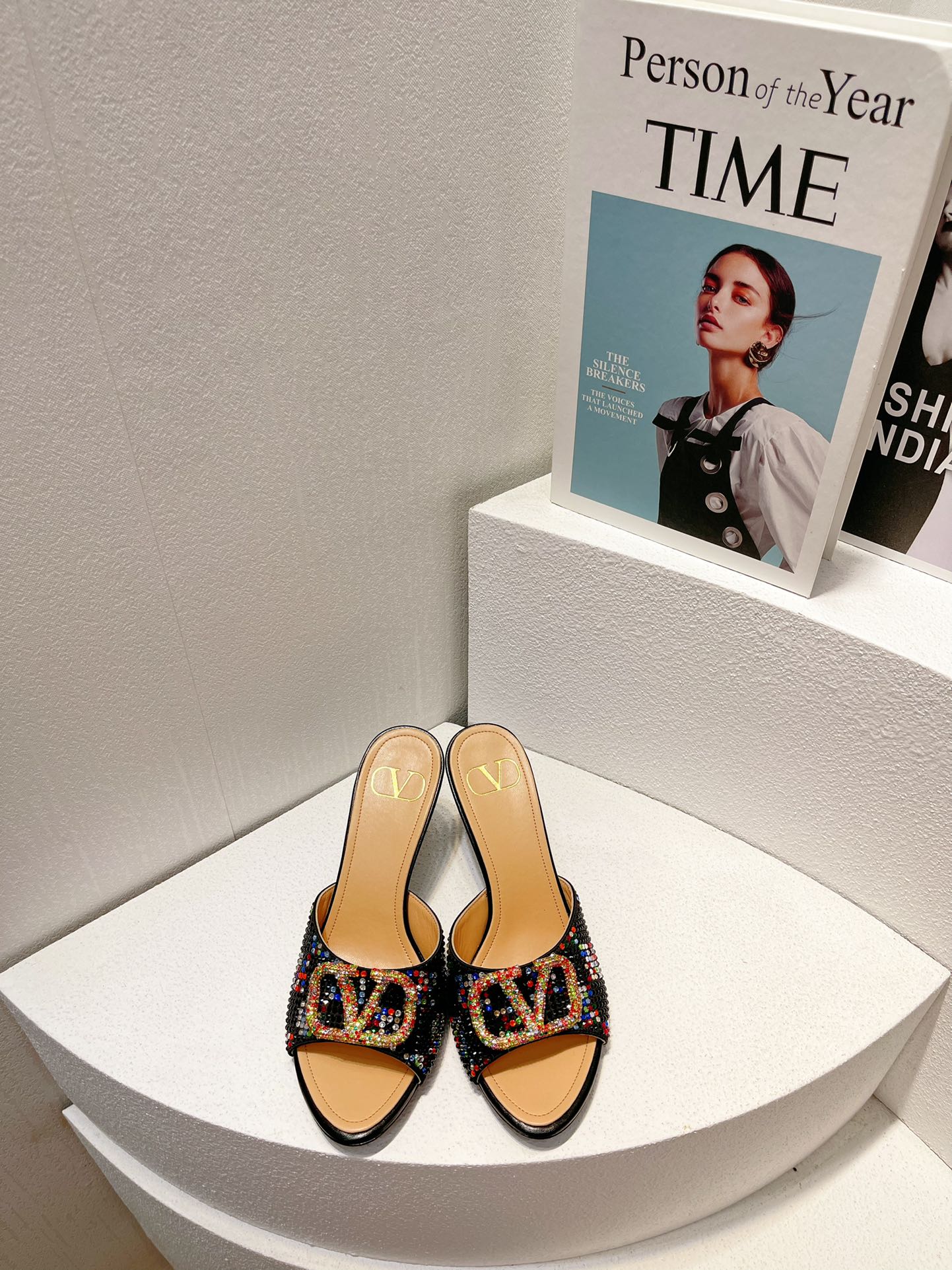 VT High Heeled Sandals Black Sheepskin 292851