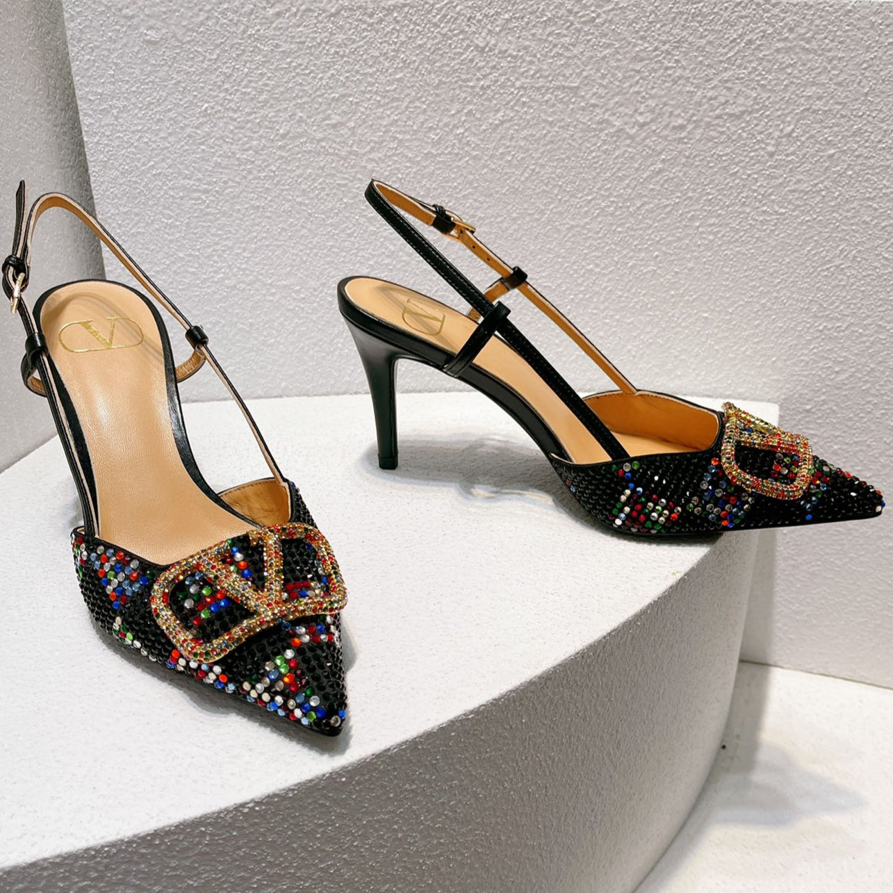 VT High Heeled Slingbacks Black Sheepskin 292828