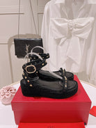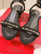VT Rockstud Platform Sandals 65mm Black Espadrilles Calfskin 521309