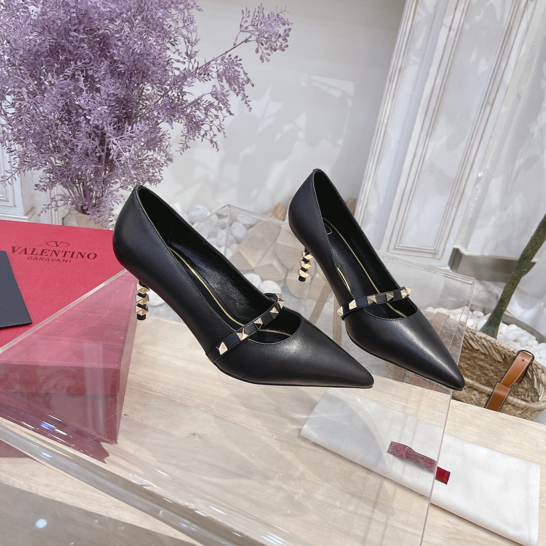 VT Rockstud Pumps Black Sheepskin Leather 340258