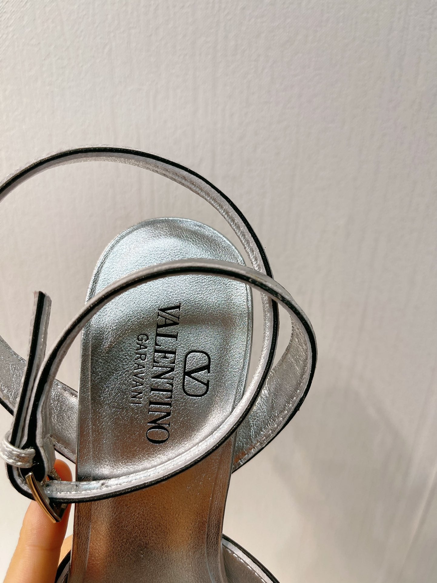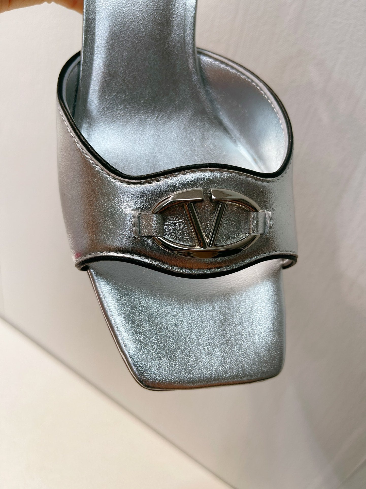 VT Sandals Heels 50mm Silver Cowhide 292775