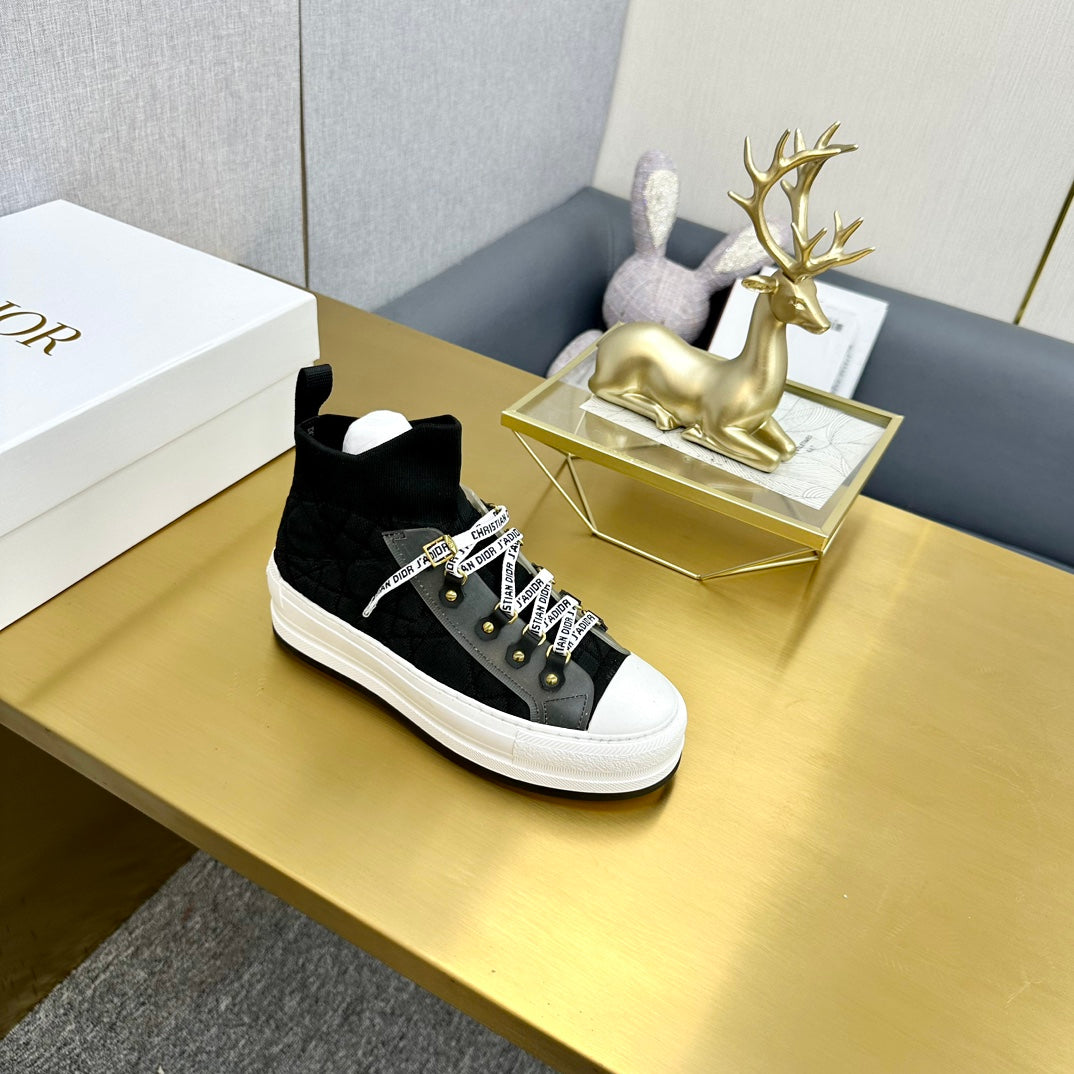 Walk'n'Dior Sneaker In Black Mix Grey Wool And Cowhide 111931